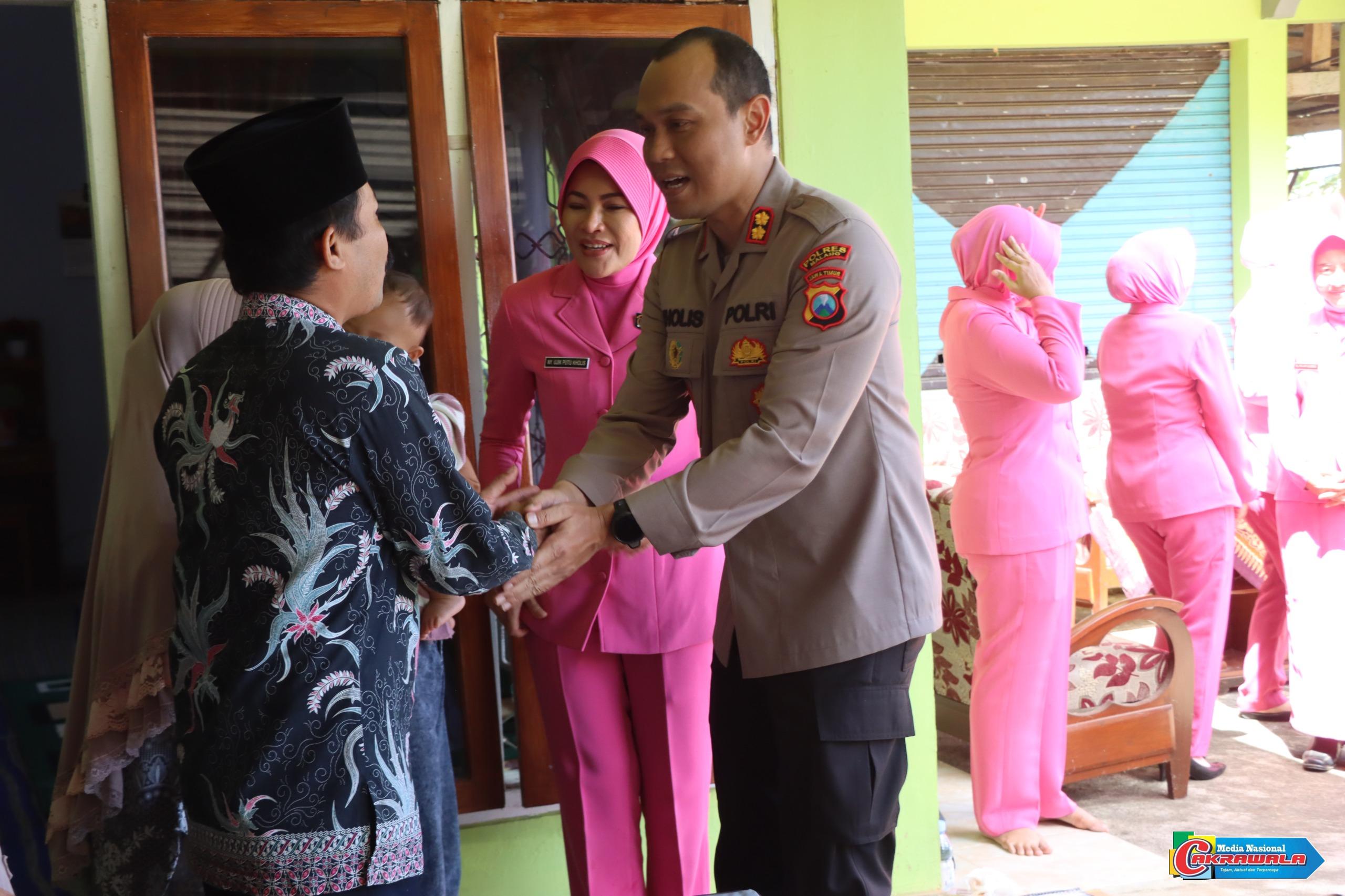 Kapolres Malang, AKBP Putu Kholis Aryana, didampingi Ketua Bhayangkari Cabang Polres Malang, Ny Ujik Putu Kholis, memimpin kegiatan silaturahmi yang juga dihadiri oleh para pejabat utama Polres, tokoh masyarakat, dan perwakilan Aremania.