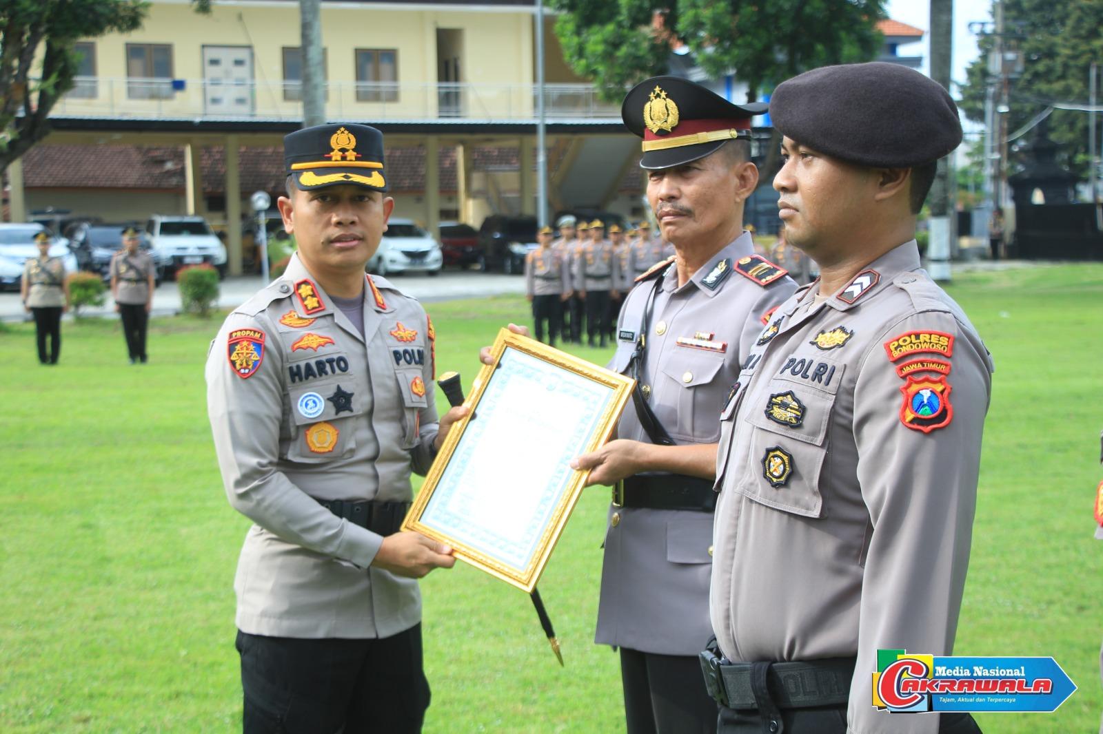 Di sela-sela upacara Sertijab, Kapolres Bondowoso juga memberikan penghargaan khusus kepada beberapa anggota yang berprestasi dan mengukir dedikasi tinggi: