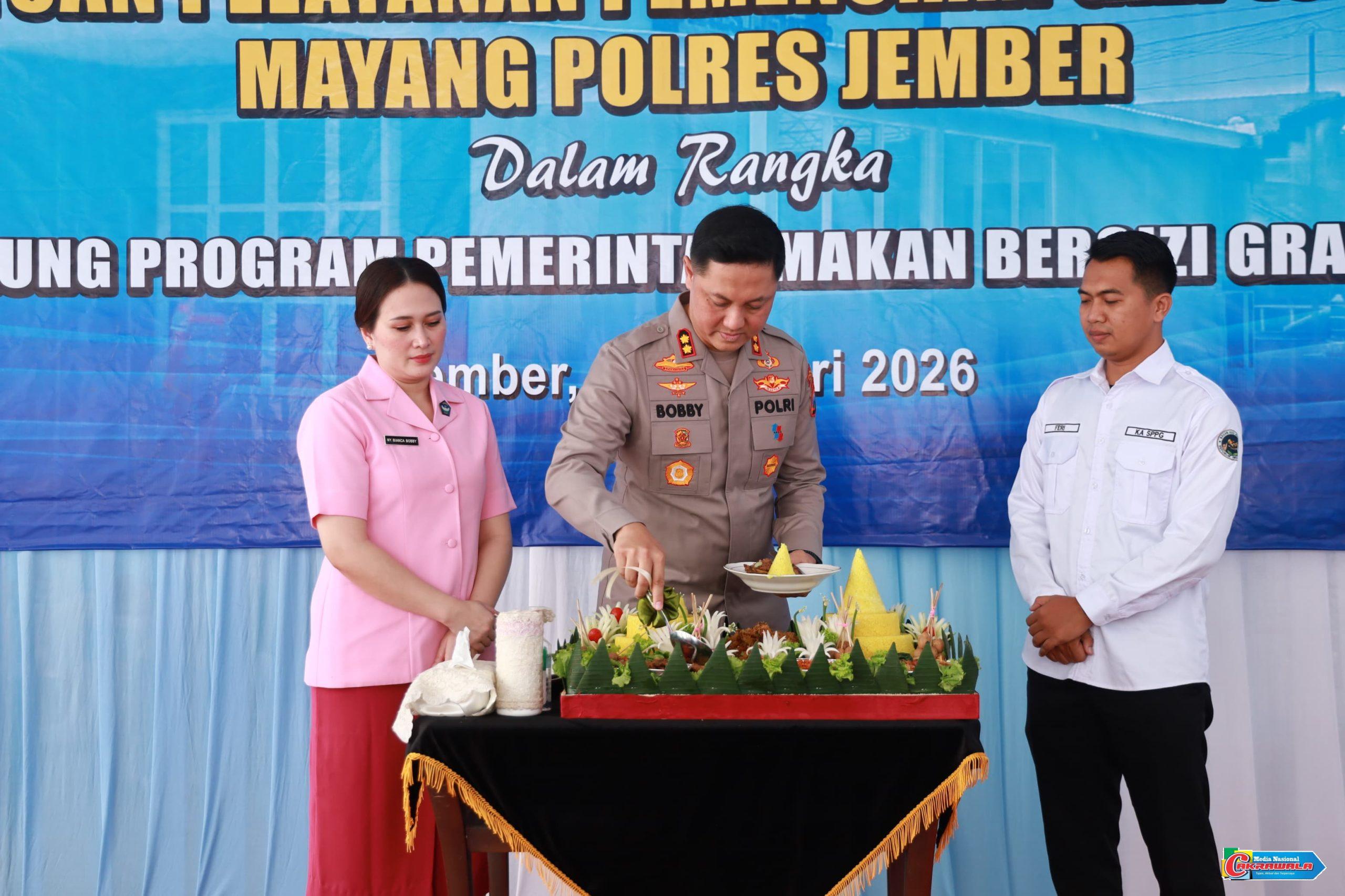 JEMBER,Cakrawala – Komitmen mendukung program nasional Makan Bergizi Gratis (MBG), Polres Jember Polda Jawa Timur (Jatim) meresmikan Satuan Pelayanan Pemenuhan Gizi (SPPG) di Kecamatan Mayang, Jumat (30/1/2026).