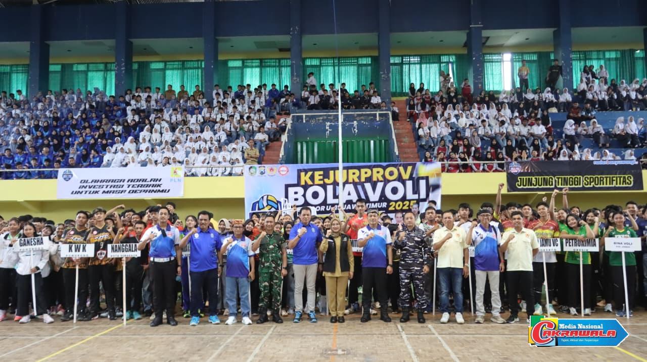 BANYUWANGI,Cakrawala– Kejuaraan Provinsi (Kejurprov) Bola Voli U-19 Jawa Timur resmi dibuka di GOR Tawang Alun Banyuwangi, Senin (27/10/2025).