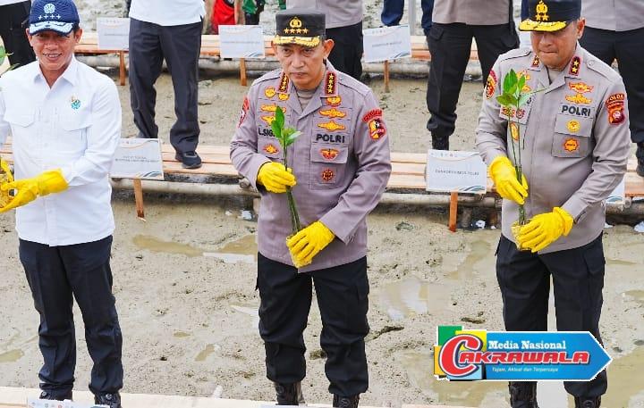 Mempawah Kalimanatan Barat,Cakrawala-Kapolri Jenderal Polisi Listyo Sigit Prabowo bersama Menteri Lingkungan Hidup dan Kehutanan (LHK) Hanif Faisol Nurofiq melaksanakan kegiatan penanaman hutan mangrove di pesisir Kabupaten Mempawah, Kalimantan Barat, Jumat pagi (8/8).
