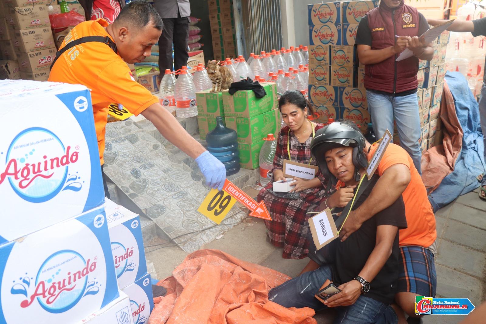 PAMEKASAN,Cakrawala-Kasat Reskrim Polres Pamekasan Polda Jatim, AKP Doni Setiawan memimpin rekonstruksi kasus tindak pidana yang menimpa Kurir JNT, Kamis (3/7/2025) siang.