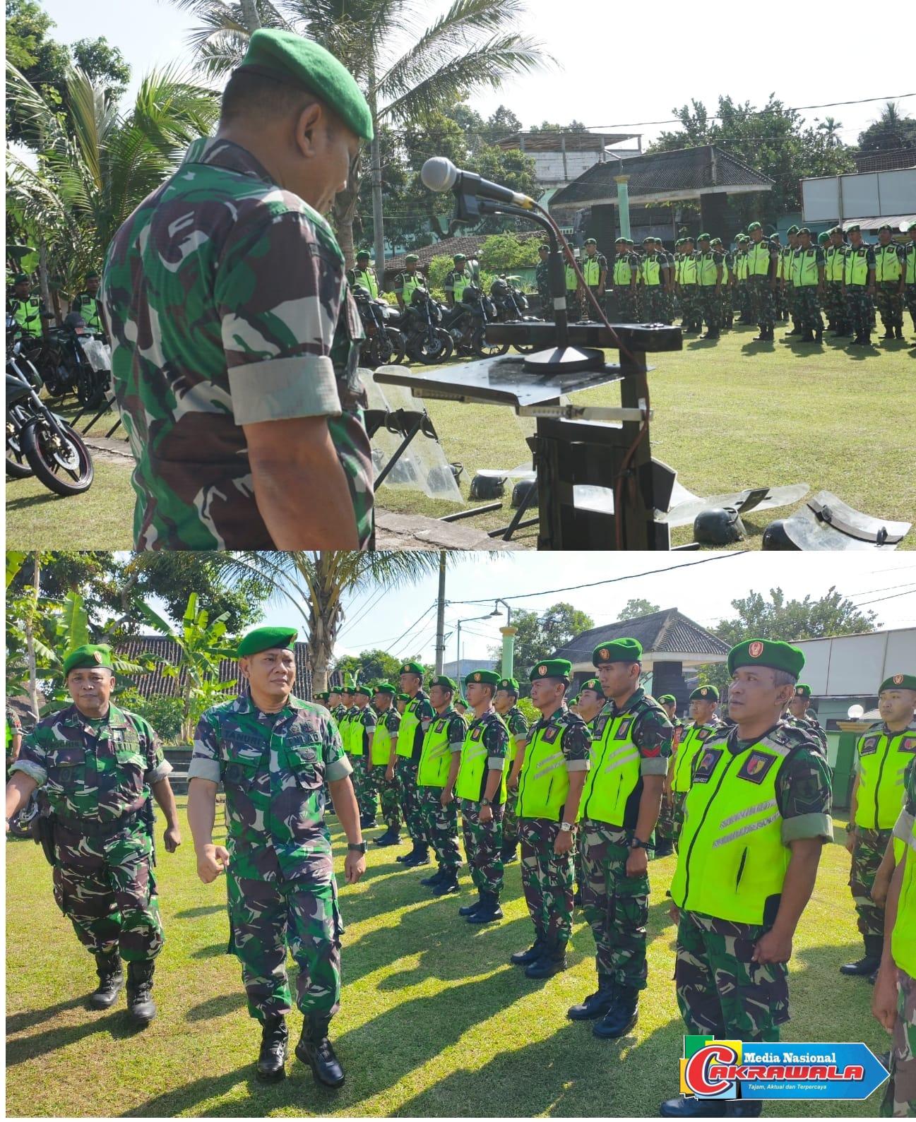 Mayor Inf Tanuri dalam sambutannya menyampaikan, pentingnya menyatukan visi dan kolaborasi untuk mendukung kelancaran Pemilu dan Pilkada tahun 2024. Untuk itu kita persiapkan semua nya agar berjalan dengan aman dan lancar, beliau juga menambahkan Gelar Pasukan dan Materil ini seperti Randis motor roda 4 (Strada), Randis Roda 2. ( Vixion ,Versa dan triil) dan Kap PHH sangat penting dilaksanakan untuk mengetahui sejauh mana kesiapan Prajurit, Materil, maupun segenap unsur pendukungnya, sehingga sewaktu-waktu dapat digerakkan dan mampu bereaksi dengan sigap dan cepat sesuai permintaan. Untuk itu, saya berharap kepercayaan dan amanah dalam melaksanakan tugas pengamanan