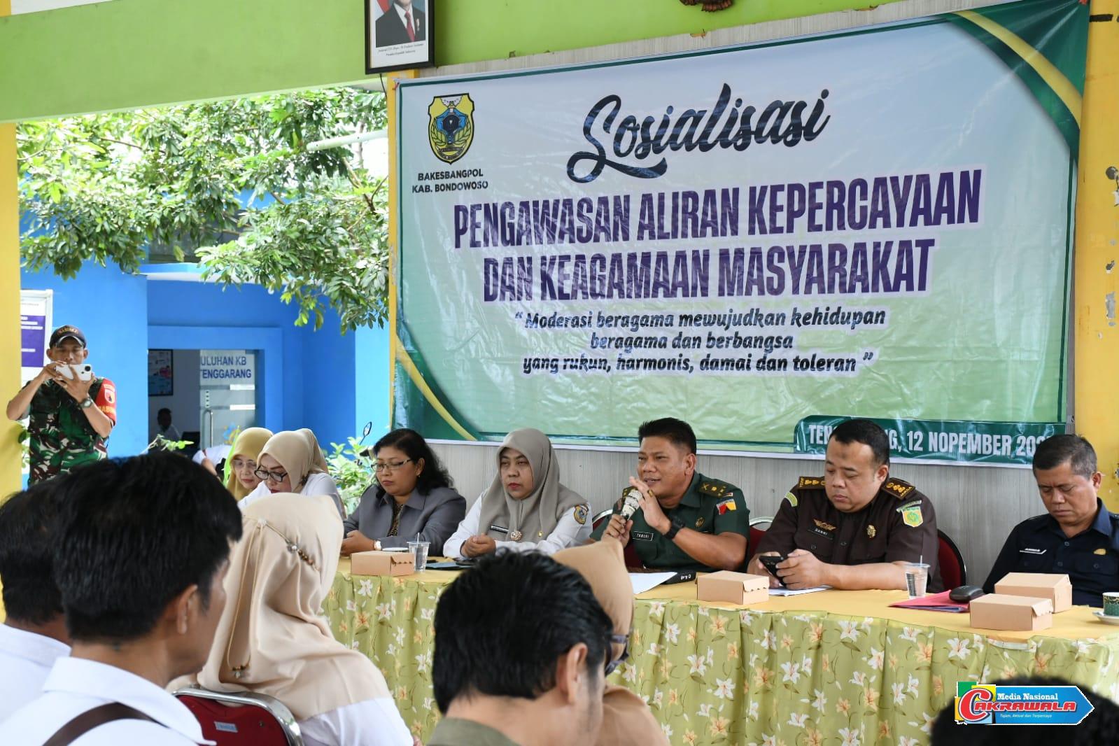 Selain Kasdim, kegiatan juga diisi oleh narasumber dari Kejaksaan Negeri Bondowoso dan Bakesbangpol Kabupaten Bondowoso yang memaparkan pentingnya peran masyarakat dalam mengawasi aliran kepercayaan yang menyimpang dari nilai-nilai kebangsaan.