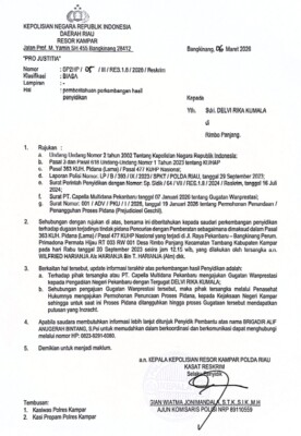 Di sisi lain, penyidik pembantu Polres Kampar, Brigadir Alif Anugerah Bintang, belum memberikan penjelasan.