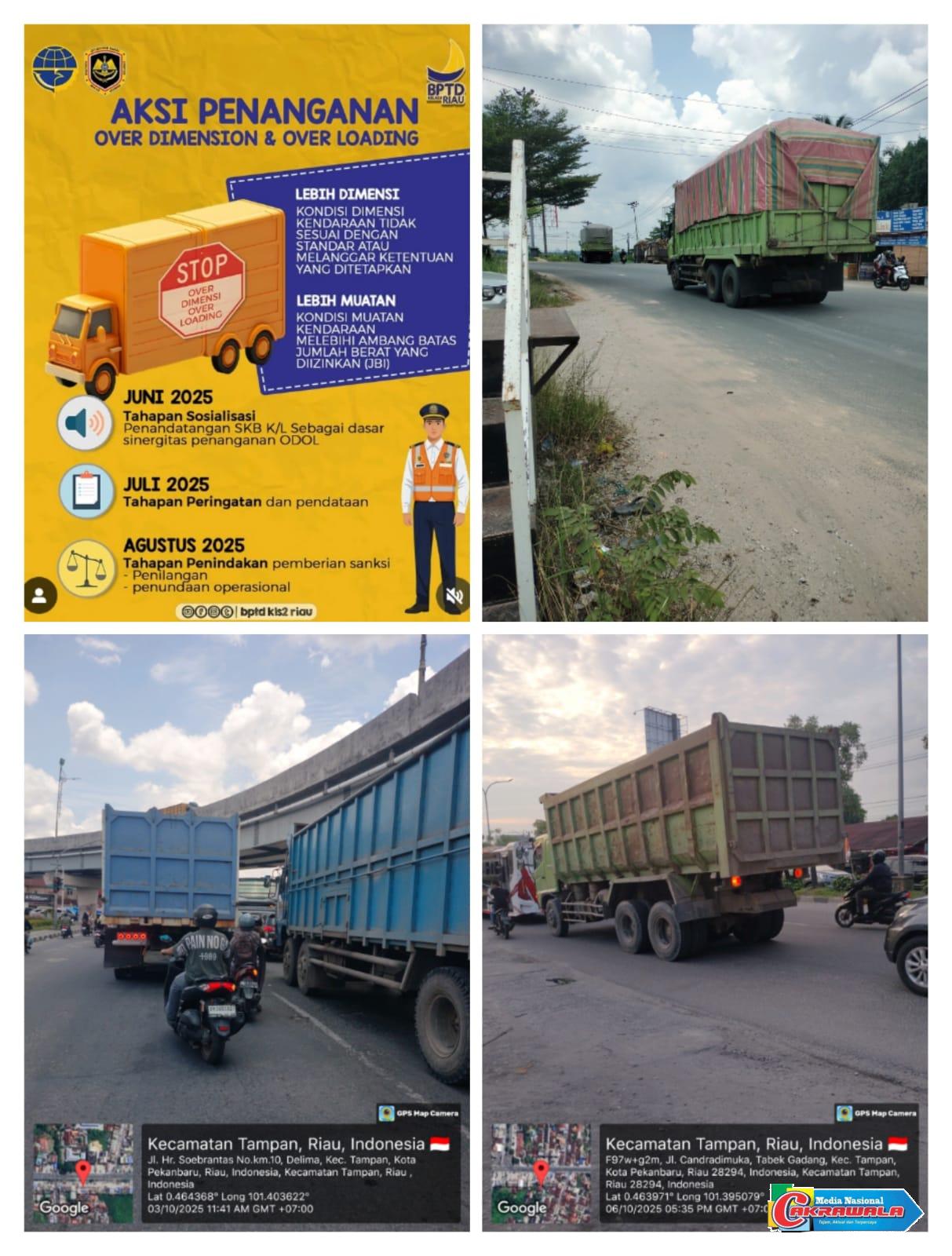 Pekanbaru,Cakrawala – Program pemerintah untuk menertibkan kendaraan Over Dimension dan Over Loading (ODOL) kembali dipertanyakan efektivitasnya. Meski tahapan penindakan telah dijadwalkan oleh Balai Pengelola Transportasi Darat (BPTD) Kelas II Riau, truk-truk ODOL masih bebas melintas di jalan-jalan utama Kota Pekanbaru tanpa tindakan nyata dari aparat berwenang.
