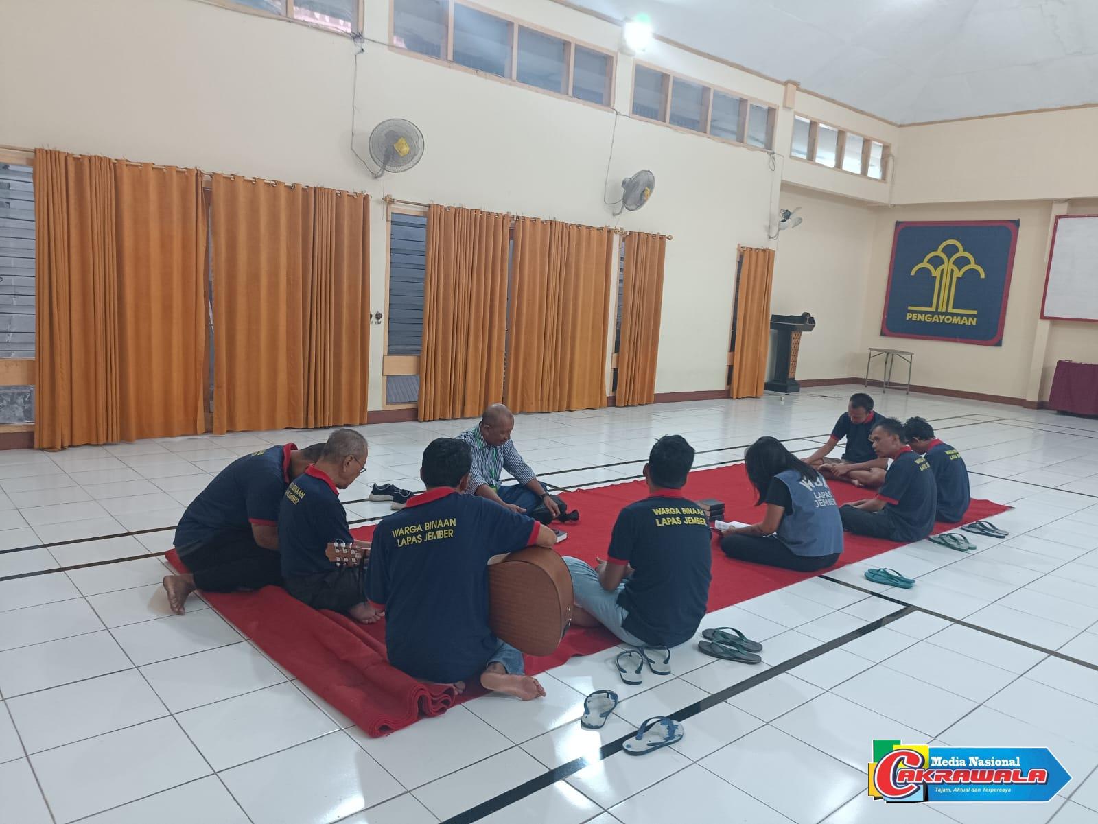JEMBER, MN Cakrawala– Kebaktian Kristen yang khidmat diadakan di Aula Lapas Kelas IIA Jember pada hari Senin (24/06/2024). Acara ini diikuti oleh 11 warga binaan yang berpartisipasi dengan penuh antusiasme. Kebaktian dipimpin oleh Pendeta Drs. Yohan Deretah dari Yayasan Perkantas, yang menyampaikan pesan-pesan rohani kepada para peserta.