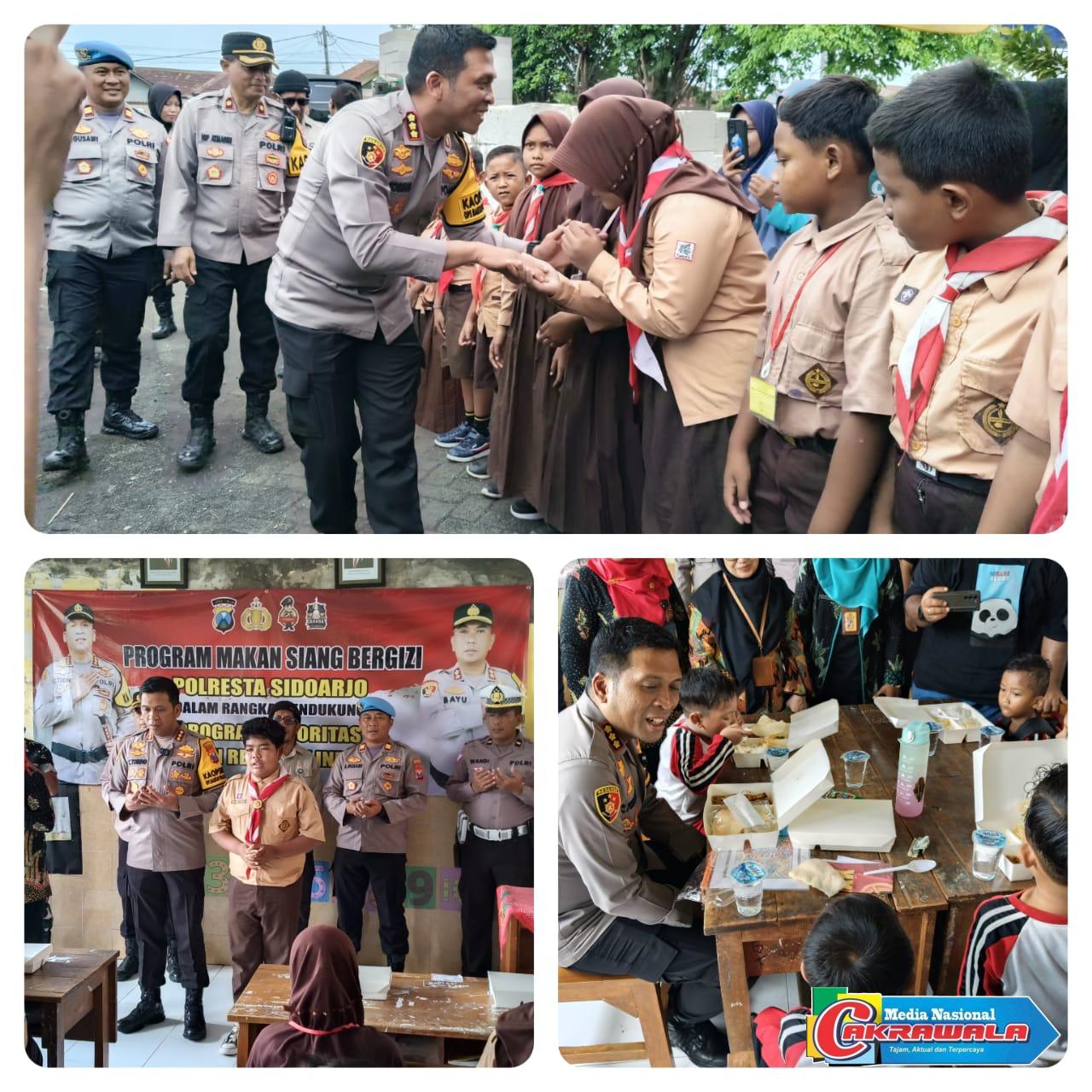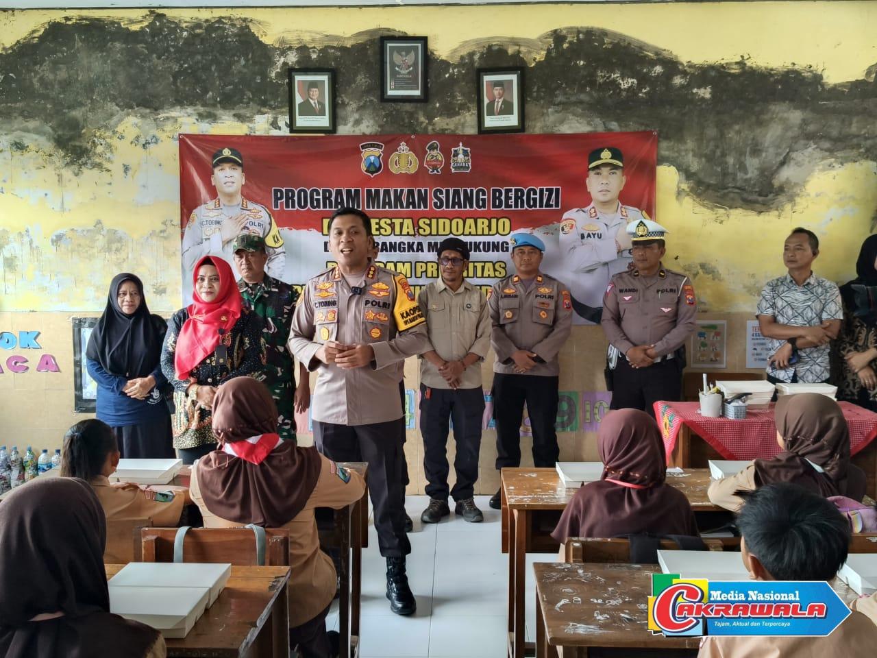 Sidoarjo, MN Cakrawala– Kapolresta Sidoarjo Komisaris Besar Polisi Christian Tobing beserta staf, dan jajaran melaksanakan program pembagian makan siang bergizi bagi pelajar TK dan Sekolah Dasar (SD).