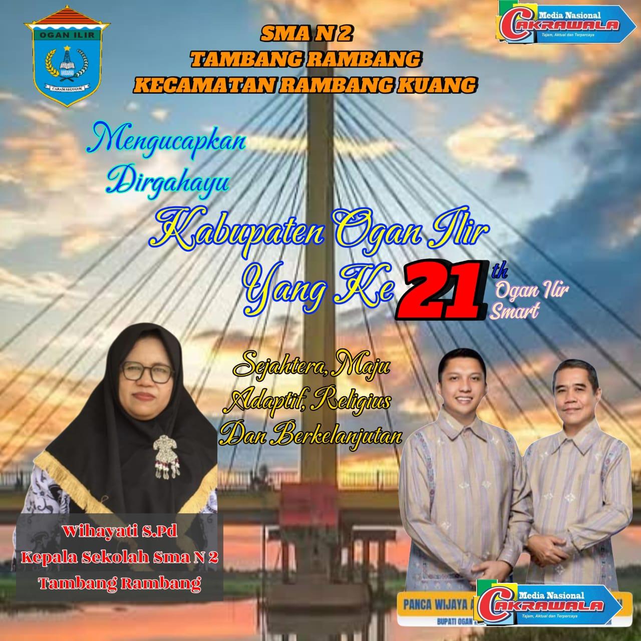 Kepala SMA N 02 RAMBANG KUANG,Ibu WIHAYATI.S,Pd. Beserta Staf Dan Jajarannya,Menggucapkan selamat memperingati HUT Kabupaten Ogan Ilir yang ke-21 Tahun 2025.