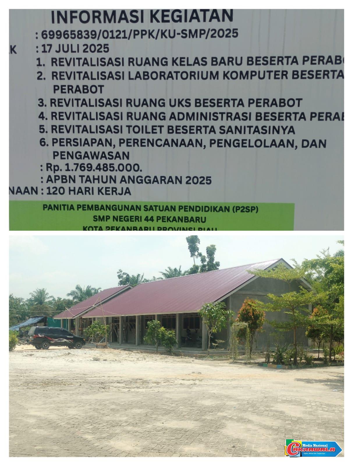 Pekanbaru,Cakrawala – Dugaan penyimpangan dalam proyek Revitalisasi Sarana dan Prasarana SMP Negeri 44 Pekanbaru kian menguat. Setelah sebelumnya ditemukan tidak adanya gambar bestek di lapangan, kini terungkap fakta baru bahwa para pekerja dan tukang proyek bukan berasal dari masyarakat sekitar sekolah, melainkan dari kecamatan lain berjarak hampir 10 kilometer.