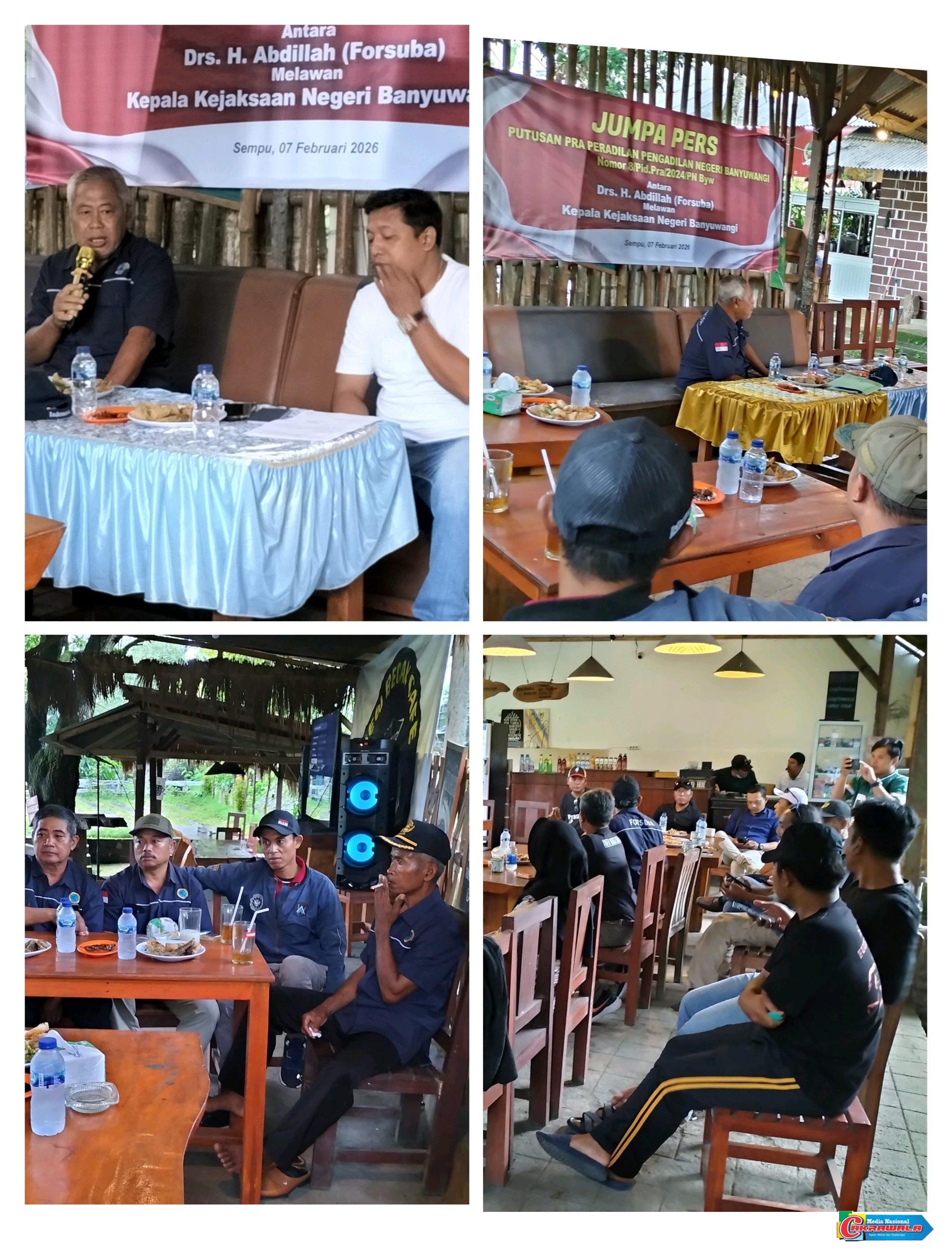 BANYUWANGI–MNCakrawala.com-Aliansi lima Lembaga Swadaya Masyarakat (LSM) menggelar jumpa pers terkait Putusan Praperadilan Pengadilan Negeri Banyuwangi Nomor 8/Pid.Pra/2024/PN Byw, perkara antara Drs. H. Abdillah (Forsuba) melawan Kepala Kejaksaan Negeri Banyuwangi, yang digelar di Kecamatan Sempu, Sabtu (7/2/2026).