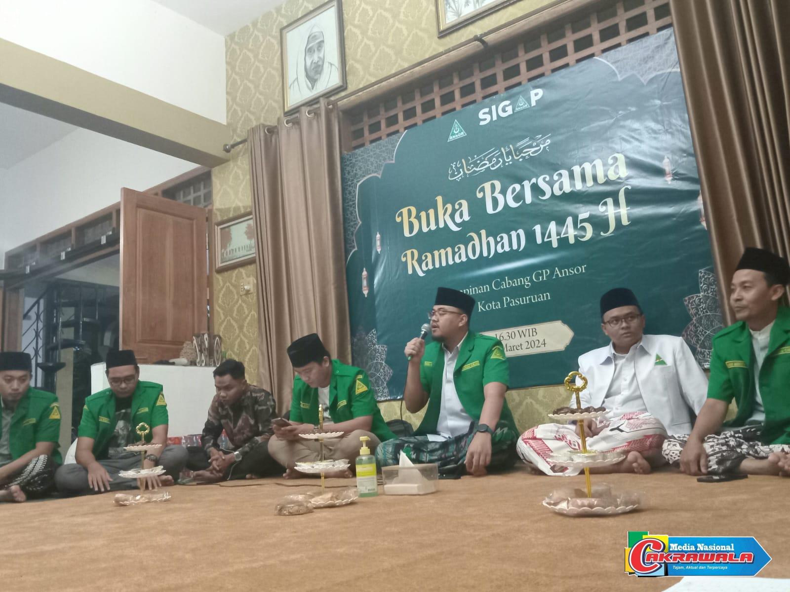 Pasuruan,MNCakrawala-Dalam rangka meningkatkan kadar keimanan serta menjalin tali silaturahmi di bulan suci Ramadhan 1445 H. Pimpinan Cabang (PC) Gerakan pemuda ansor mengajak seluruh jajaran dalam kegiatan buka bersama, Kamis (28/3/2024).