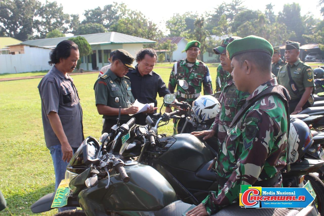 Pengecekan kendaraan diawali dengan pemeriksaan kondisi kendaraan dilanjutkan dengan kelengkapan surat seperti SIM TNI, STNK,dan KTA prajurit.