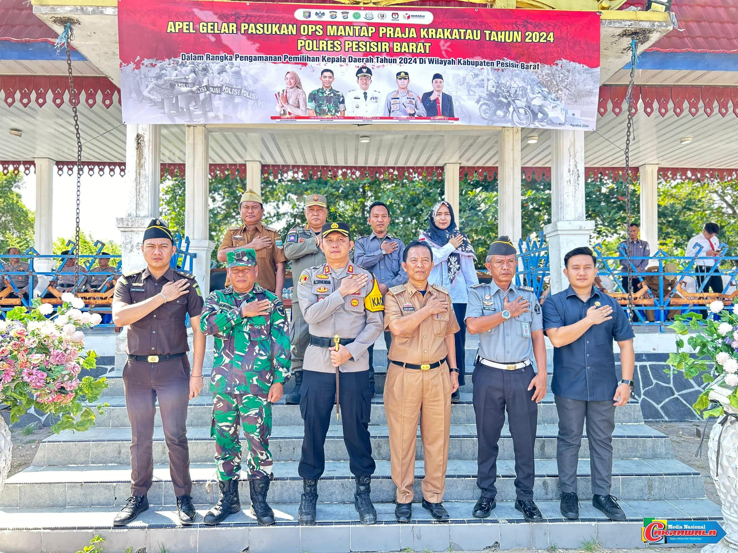 Lampung Barat,MNCakrawala– 26 Agustus 2024. Pada hari Senin, 26 Agustus 2024, pukul 08.20 WIB, Polres Lampung Barat & Pesisir Barat menggelar Apel Gelar Pasukan Operasi Mantap Praja Krakatau dalam rangka pengamanan Pilkada Kabupaten Lampung Barat Tahun 2024. Kegiatan ini dilaksanakan di Lapangan Polres Lampung Barat dan Lapangan Merdeka Labuhan Jukung Pesisir Barat.