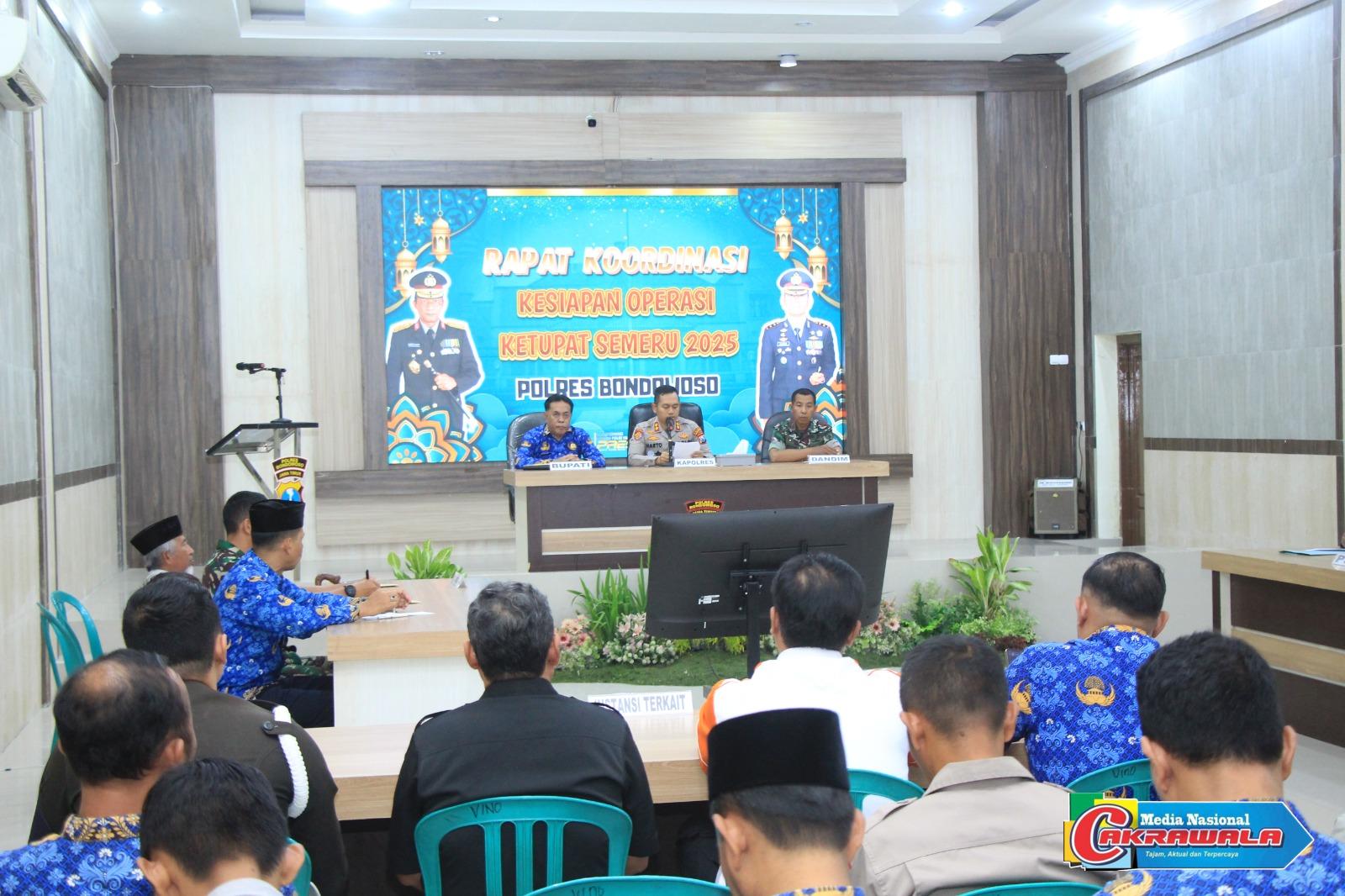 Bondowoso,Cakrawala – Dalam rangka mendukung kelancaran dan keamanan perayaan Idulfitri 1446 H, Kodim 0822 Bondowoso berperan aktif dalam Operasi Semeru Ketupat 2025 yang digelar oleh Polres Bondowoso. Hal ini disampaikan dalam Rapat Koordinasi (Rakor) Kesiapan Operasi Semeru Ketupat 2025 yang berlangsung di Aula Polres Bondowoso pada Senin (17/3/2025). Rakor tersebut dihadiri oleh berbagai unsur terkait, termasuk Kapolres Bondowoso, perwakilan Bupati Bondowoso, Dandim 0822/Bondowoso, Dishub, Ketua MUI, serta instansi lainnya.