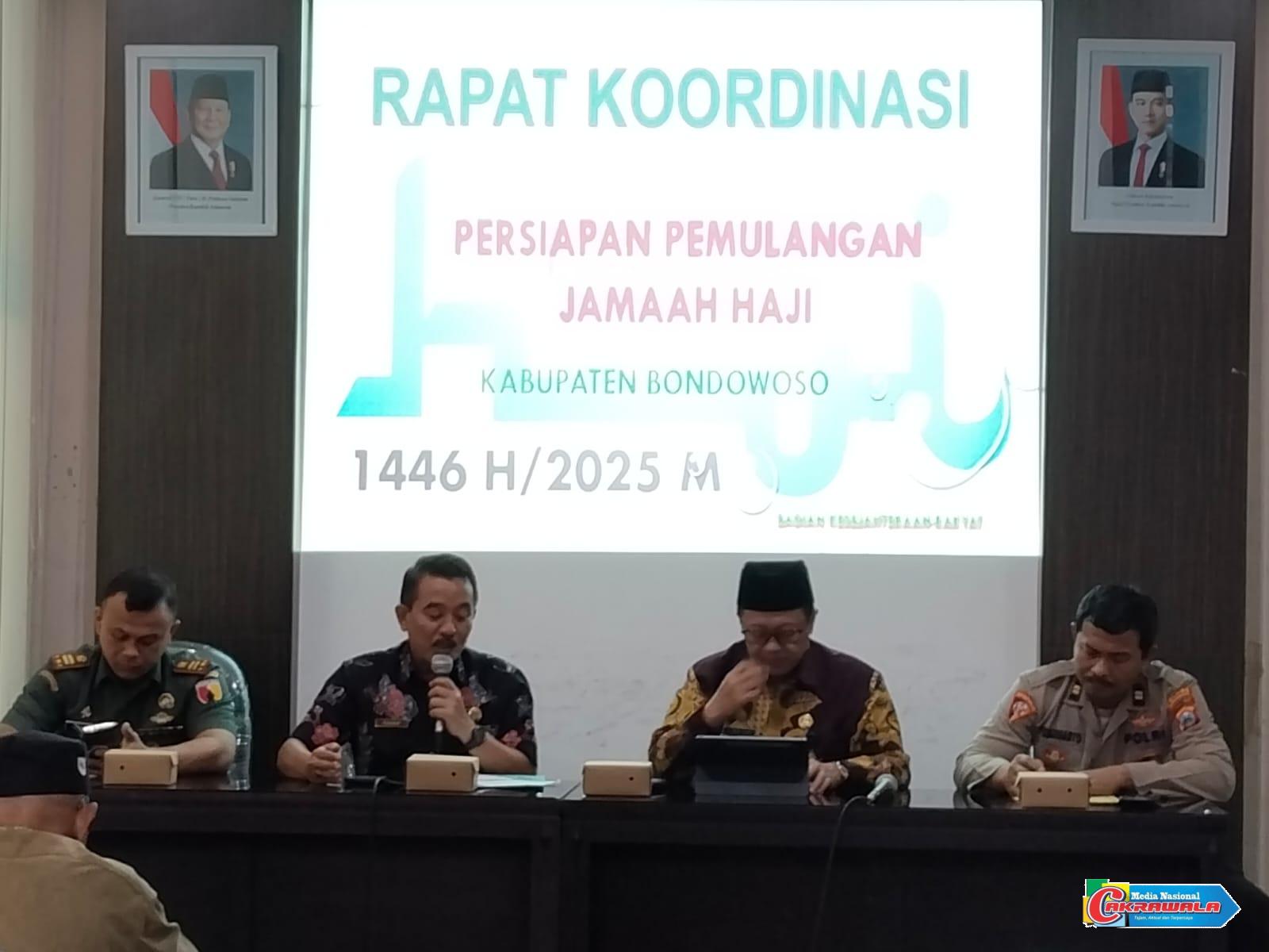Rapat koordinasi ini dipimpin langsung oleh Pj. Sekda Bondowoso, Anissatul Hamidah, S.H., M.Si, dengan melibatkan berbagai unsur Forkopimda dan OPD terkait, di antaranya Polres Bondowoso, Bagian Kesra Setda, serta tokoh masyarakat dan perwakilan KBIH.