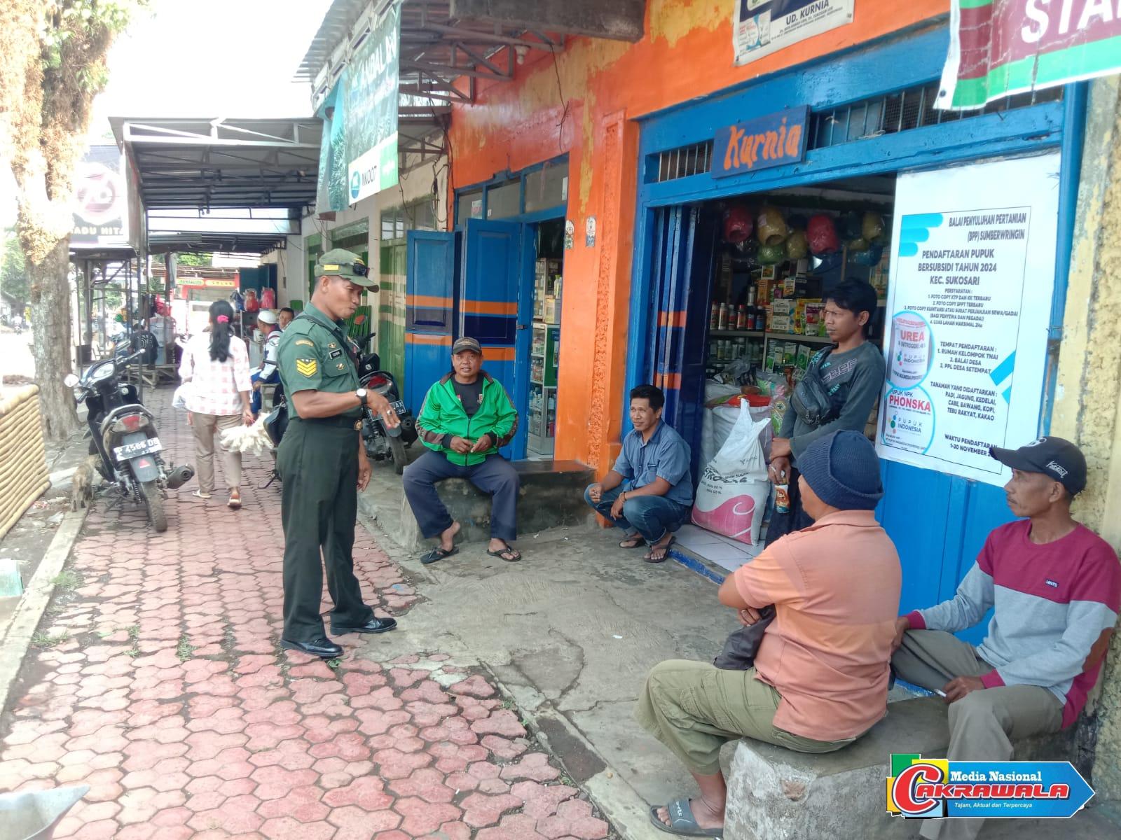 BONDOWOSO,MMCAKRAWALA.COM- Seorang Babinsa harus bisa merangkul masyarakat dari berbagai kalangan tanpa harus membedakan status sosial, baik teman maupun saudara, seperti yang dilakukan oleh Babinsa Koramil 0822/12 Sukosari Kodim 0822/Bondowoso, Serka Usman menjalin hubungan baik dengan para tukang ojek di simpang pasar Sukosari Kecamatan Sukosari Kabupaten Bondowoso, Minggu (10/12/2023).
