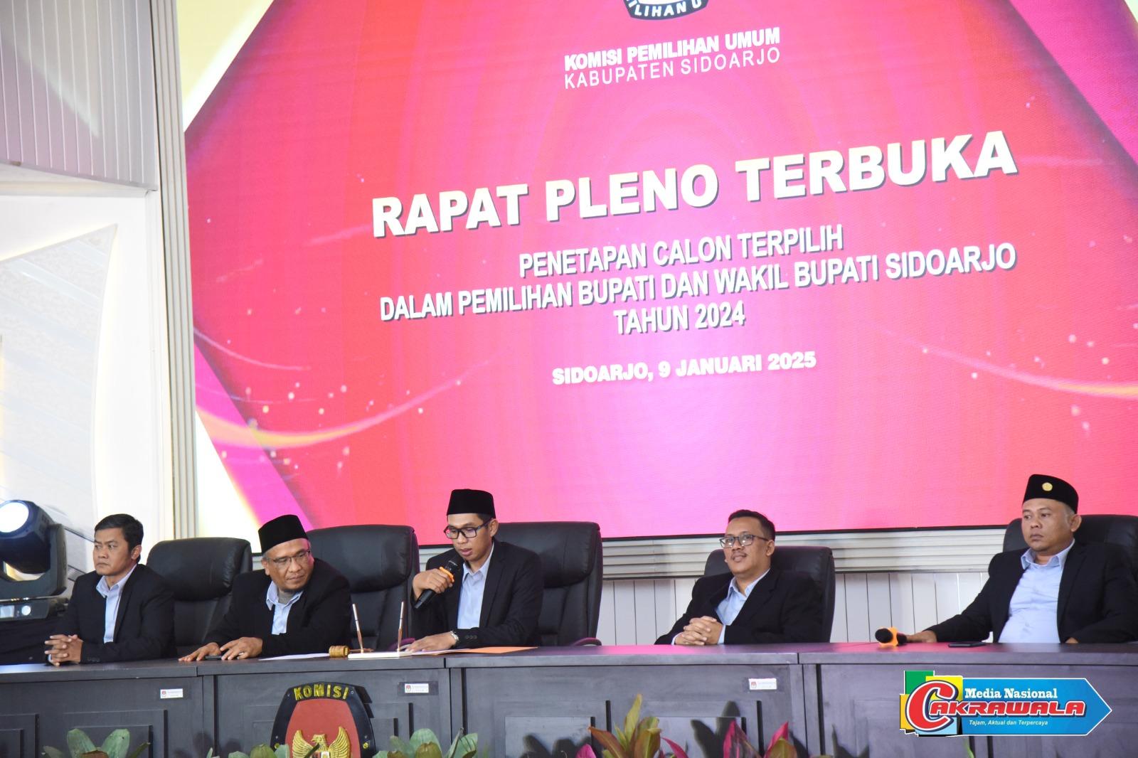 Dalam kesempatan itu Ketua KPU Sidoarjo Fauzan Adhim membacakan SK KPU Sidoarjo nomer 1 tahun 2025 tentang penetapan Pasangan Calon/Paslon bupati dan wakil bupati terpilih Kabupaten Sidoarjo tahun 2024. Dalam SK KPU Sidoarjo tersebut ditetapkan Paslon nomer urut 1 H. Subandi SH,M.Kn dan Hj. Mimik Idayana sebagai bupati dan wakil bupati terpilih Kabupaten Sidoarjo dengan perolehan suara terbanyak. Dalam Pilkada 2024 kemarin Paslon nomer urut 1 memperoleh 559.878 suara. Atau 58,08 persen dari total suara sah.