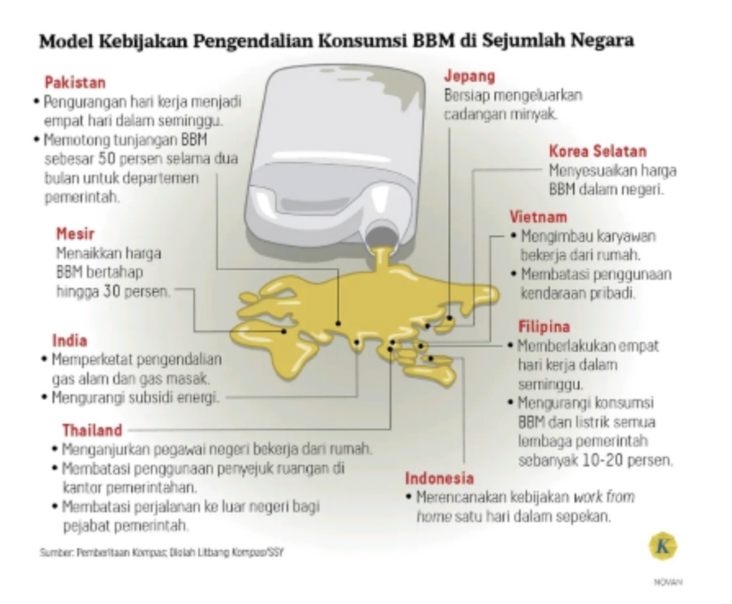 Jakarta,MN Cakrawala– Krisis energi global yang dipicu konflik geopolitik kini mulai terasa dampaknya di berbagai negara. Sejumlah pemerintah mengambil langkah drastis, dari memangkas hari kerja, membatasi konsumsi BBM, hingga menaikkan harga energi.