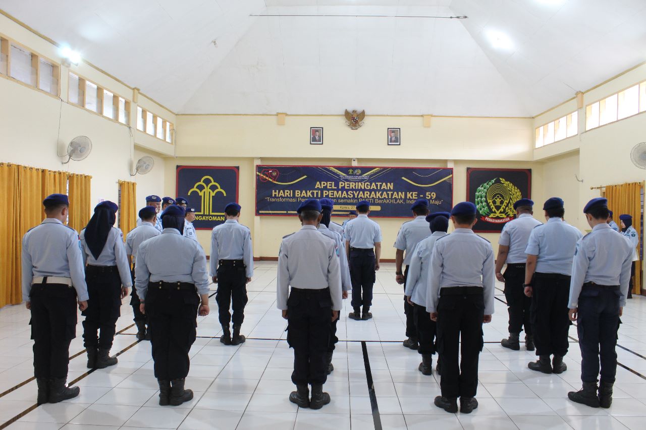 Apel peringatan hari lahir Pemasyarakatan tersebut juga diisi dengan renungan dan doa bersama untukpara pendahulu yang telah mengabdi pada bangsa dan negara, membentuk sistem Pemasyarakatan menggantikan kepenjaraan.