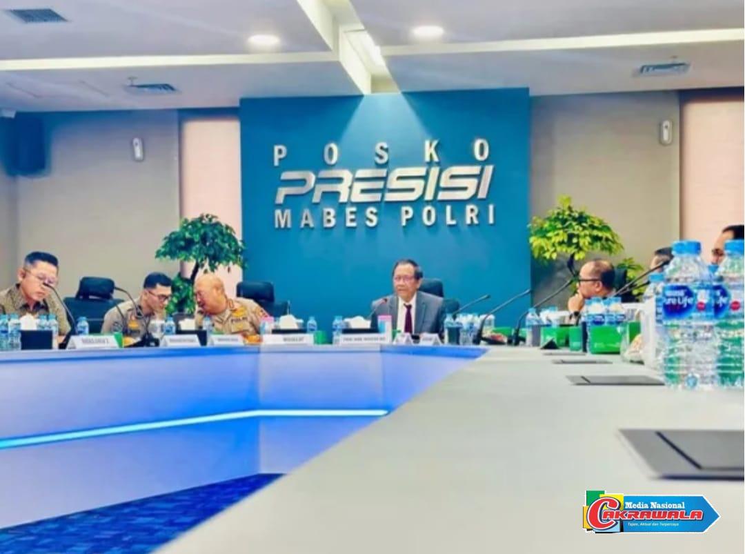 JAKARTA,Cakrawala– Di depan lebih dari 750 anggota dari seluruh Indonesia, eks Menko Polhukam, Mahfud MD, mengajak Polri tetap tegar menjadi bhayangkara negara. Hal itu disampaikan dalam Forum Belajar Bersama PJU Posko Presisi yang diikuti pejabat Polri dari pusat sampai provinsi dan kabupaten/kota.