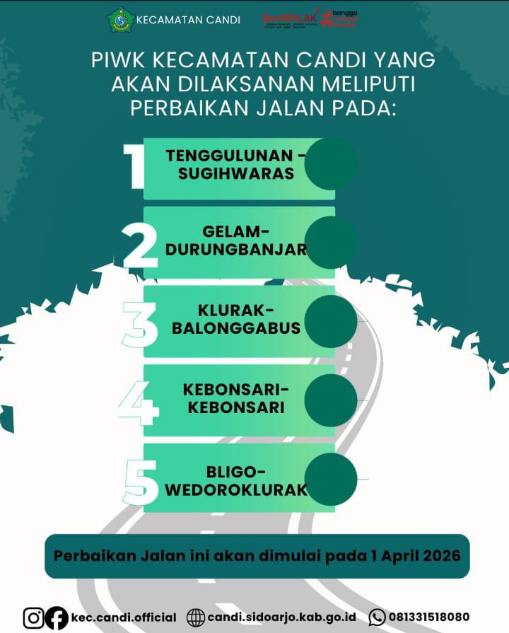 Melalui PIWK (Pagu Indikatif Wilayah Kecamatan), sebuah kebijakan anggaran daerah yang dialokasikan untuk tingkat kecamatan, bertujuan mempercepat perbaikan infrastruktur. Pemkab Sidoarjo berkomitmen melanjutkan pembangunan infrastruktur secara merata di seluruh kecamatan. Peningkatan kualitas jalan menjadi salah satu prioritas karena berdampak langsung pada konektivitas wilayah dan pengembangan ekonomi lokal.