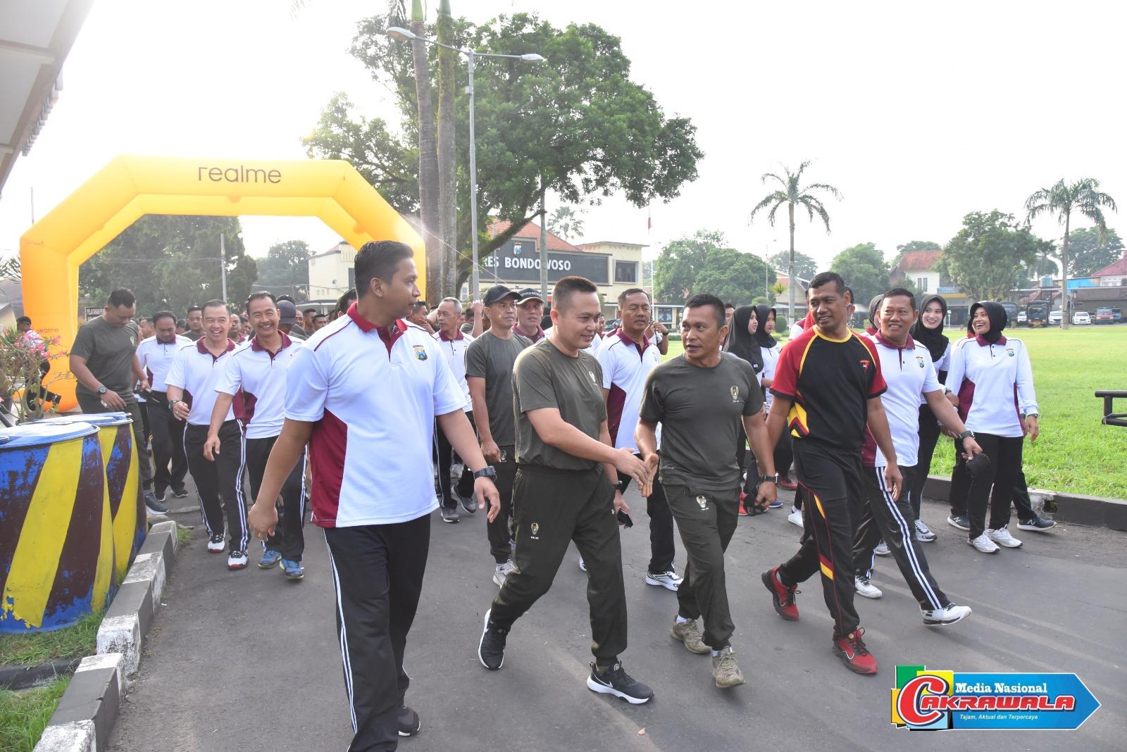 Bondowoso,MN Cakrawala– Ratusan anggota Polri dan TNI di wilayah Bondowoso melakukan olahraga bersama yang digagas oleh Polres Bondowoso dan dipusatkan di Mapolres Bondowoso, Jumat (18/5/2023) pagi.