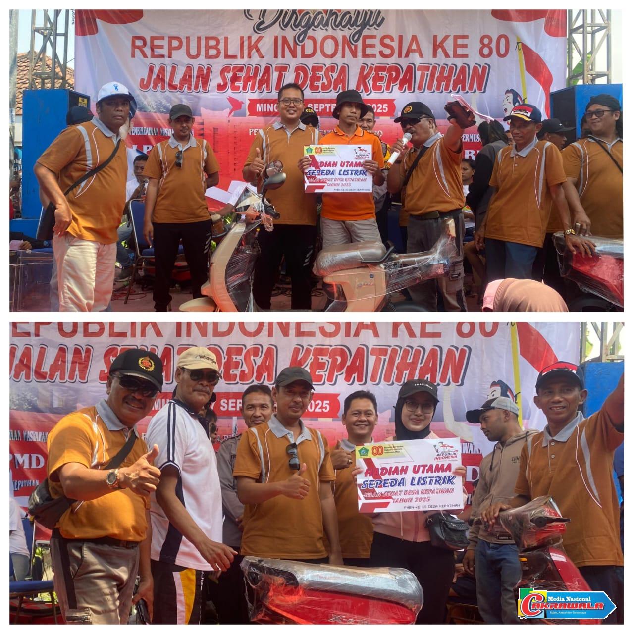 Doorprize jalan sehat dua sepeda listrik telah dibawa pulang warga RT 01 RW 02 Sdri. Ayu dan warga RT 01 RW 03 Sdr. Slamet mengakhiri acara kemeriahan jalan sehat desa Kepatihan dalam rangka HUT RI ke-80. (Ubaid/Joko)