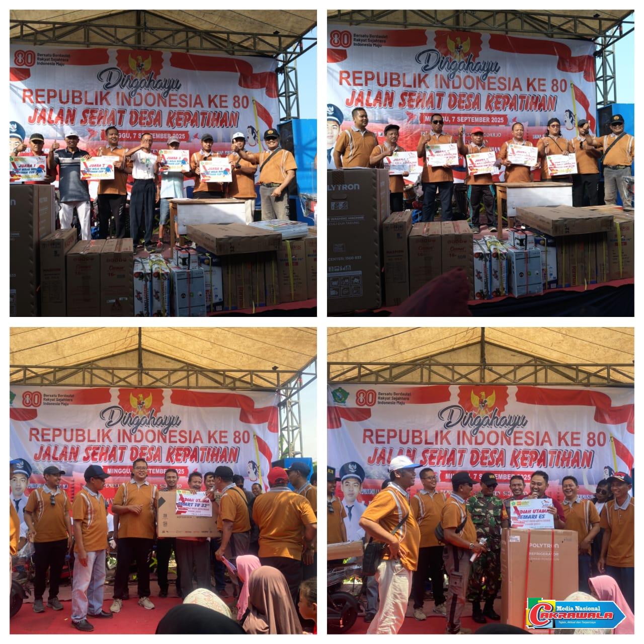 Nuansa HUT ke-80 Kemerdekaan RI begitu kental walaupun sudah menginjak bulan september. Jalan sehat diberangkatkan langsung Kepala desa Kepatihan Rigor Putratama, ratusan bahkan ribuan peserta start dari depan kantor desa mengitari lingkungan kurang lebih sejauh 2km dan finis kembali ke halaman balai desa, Minggu (07/09/2025).