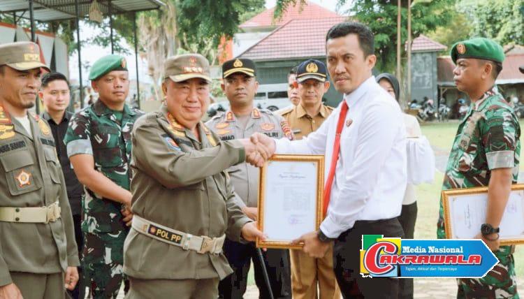 Dalam Penyerahan piagam penghargaan tersebut dilakukan pada saat kegiatan Apel Kesiap siagaan Satuan Perlindungan Masyarakat (Satlinmas) yang digelar di Lapangan Merdeka Kota Agung, Selasa (13/1/2026).