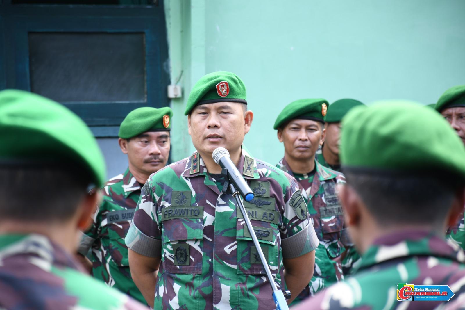 Dalam arahannya, Dandim Letkol Inf Prawito menegaskan pentingnya menjadikan momentum Idul Fitri sebagai sarana introspeksi diri. Ia menyampaikan permohonan maaf lahir dan batin kepada seluruh anggota, sekaligus mengajak untuk membuka lembaran baru dalam pengabdian, dengan semangat kebersamaan dan profesionalitas yang lebih baik.
