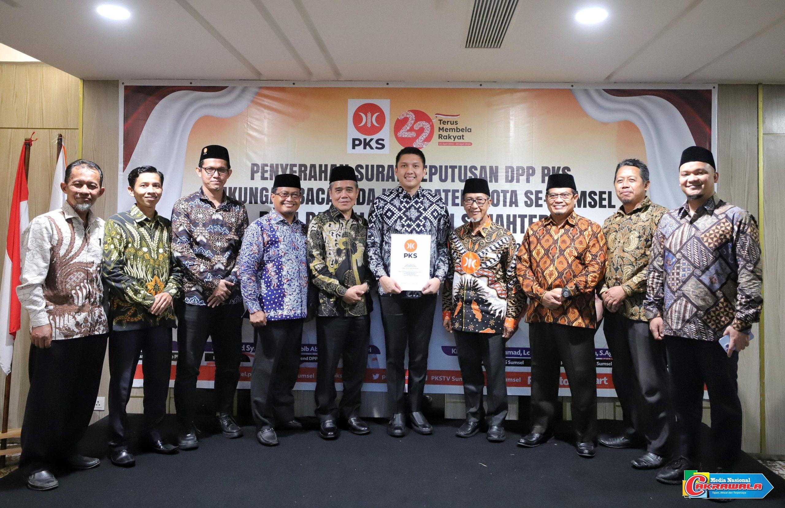 Penyerahan SK tersebut dilakukan di Hotel Excelton Palembang, Rabu siang yang diserahkan langsung Ketua MPW PKS Sumsel KH Tol’at Wafa Ahmad Lc didampingi Sekretaris DPW PKS Sumsel, Irwan Irawadi dan Ketua DPD PKS Ogan Ilir Husnul Anam. SK tersebut langsung diterima oleh Bacalon Bupati Panca Wijaya Akbar dan Bacalon Wabup H Ardani