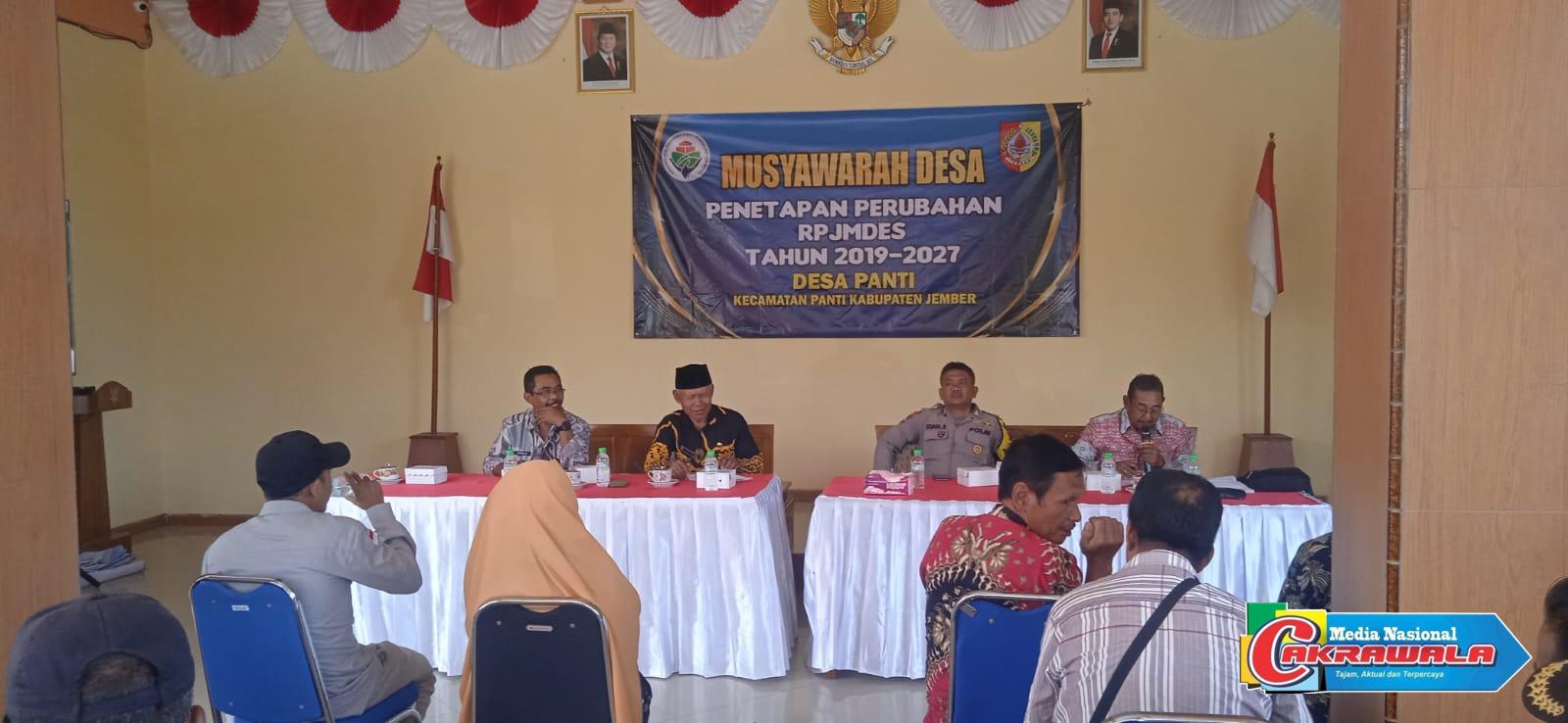 Jember,MN Cakrawala-Melalui forum pertemuan dengan masyarakat desa Panti Suroso bersama BPD dan tim pendamping desa musyawarah untuk pembentukan dan penyusunan rpjmdes program dari perpanjangan kades.