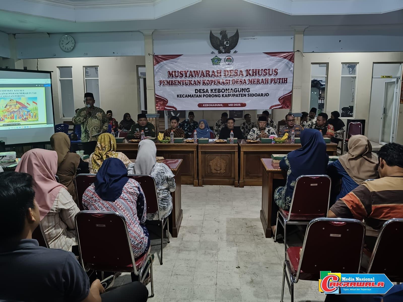 Sidoarjo, MN Cakrawala– Desa Kebonagung melaksanakan pembentukan Koperasi “Merah Putih” Sesuai Intruksi Presiden No 9 Tahun 2025 untuk pemerataan ekonomi desa, juga dukungan regulasi surat edaran Mentri Koperasi No. 1/2025 dan SK No. 9/2025 yang memastikan proses pembentukan jelas dan terarah. Desa Kebonagung, Kecamatan Porong, Kabupaten Sidoarjo, melalui Musyawarah Desa Khusus (MUSDESUS) membentuk Koperasi Desa Merah Putih, Selasa (20/05/2023).