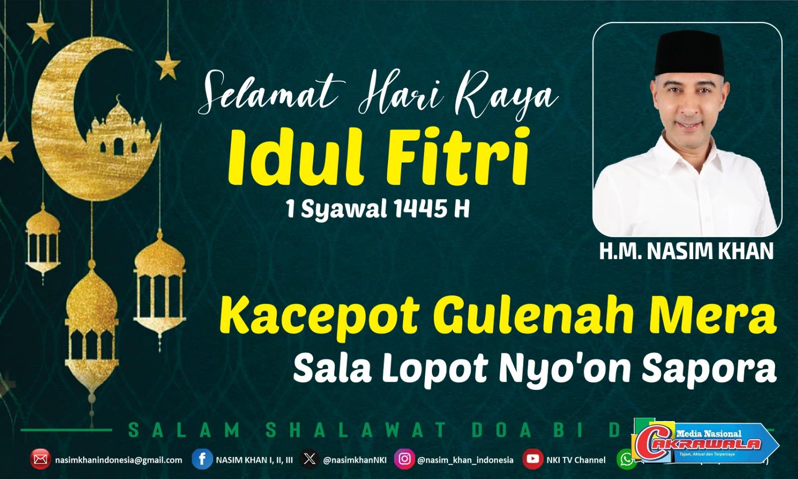 “Saya ucapkan Selamat Hari Raya Idul Fitri 1445 H, Minal Aidin Walfaizin mohon maaf lahir dan batin,” ucap Nasim Khan.