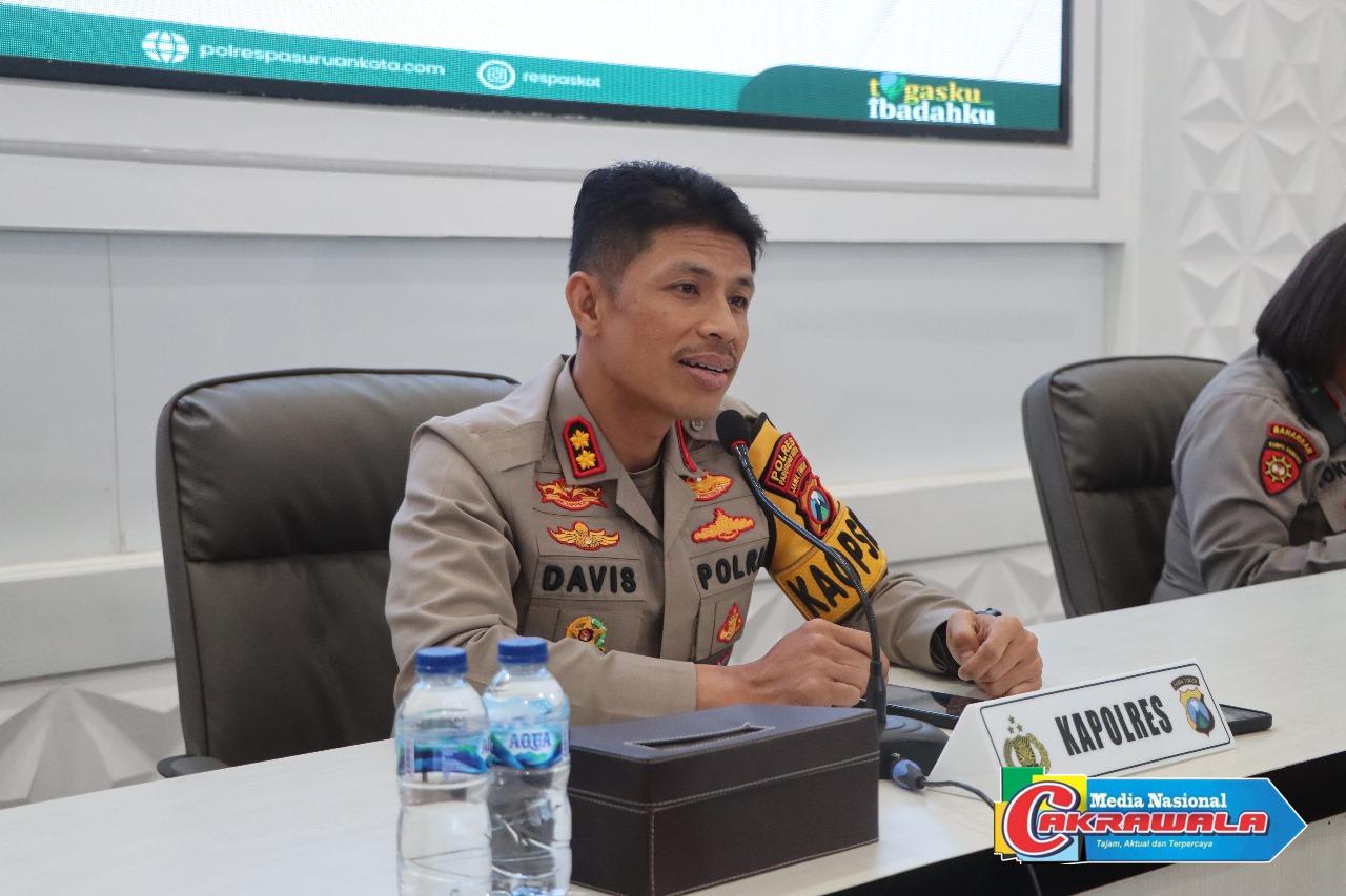 KOTA PASURUAN,Cakrawala – Menutup rangkaian pengamanan selama bulan suci Ramadhan dan perayaan Idul Fitri 1446 H, Kapolres Pasuruan Kota AKBP Davis Busin Siswara menyampaikan hasil analisa dan evaluasi (Anev) terkait kondisi keamanan dan ketertiban masyarakat (kamtibmas) di wilayah hukum Polres Pasuruan Kota.