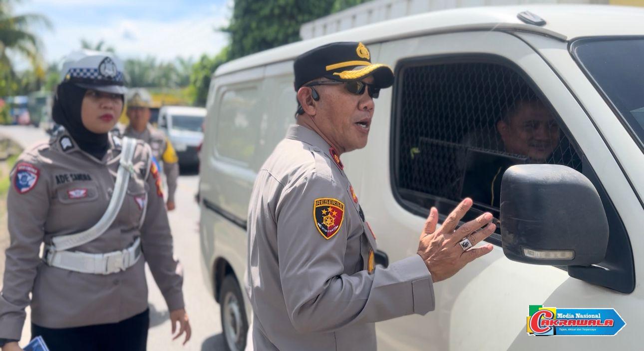 Dengan ramah petugas menyapa, memberikan imbauan, hingga mengingatkan pentingnya mematuhi rambu dan menjaga keselamatan berkendara.