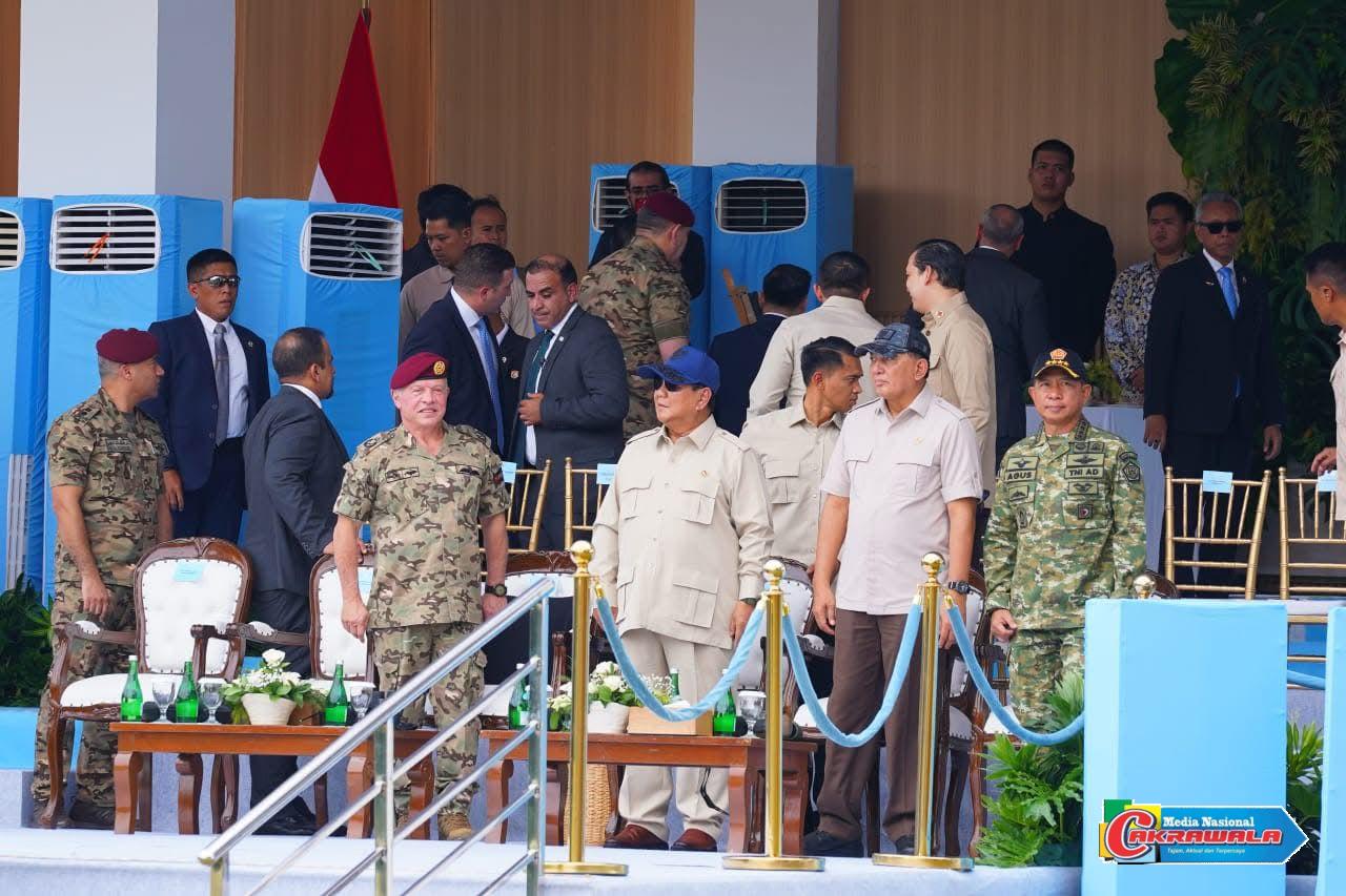 Jakarta,Cakrawala-(Puspen TNI). Panglima TNI Jenderal TNI Agus Subiyanto mendampingi Presiden Republik Indonesia Bapak Prabowo Subianto dalam menerima kunjungan kehormatan Raja Yordania Abdullah II Ibn Al-Hussein menyaksikan Demonstrasi Joint Drone Exercise antara TNI dengan Jordan Armed Forces di Lapangan Tembak Brigif 1 Kopasgat, Halim Perdanakusuma, Jakarta.