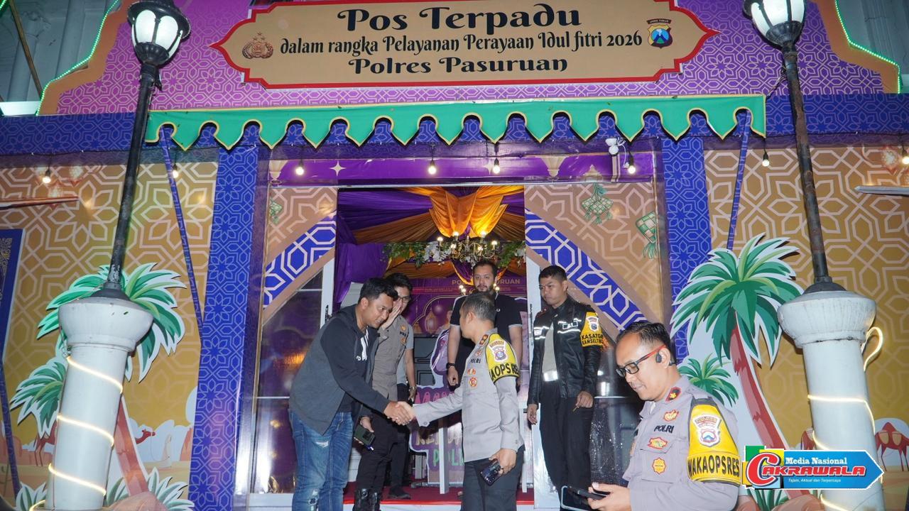 PASURUAN , MN Cakrawala– Kapolres Pasuruan AKBP Harto Agung Cahyono menekankan pentingnya kewaspadaan dan pelayanan humanis kepada petugas saat memantau arus mudik menjelang Hari Raya Idul Fitri 1447 H di Pos Terpadu Simpang 4 Taman Dayu, Pandaan, Kamis (19/3/2026) malam.