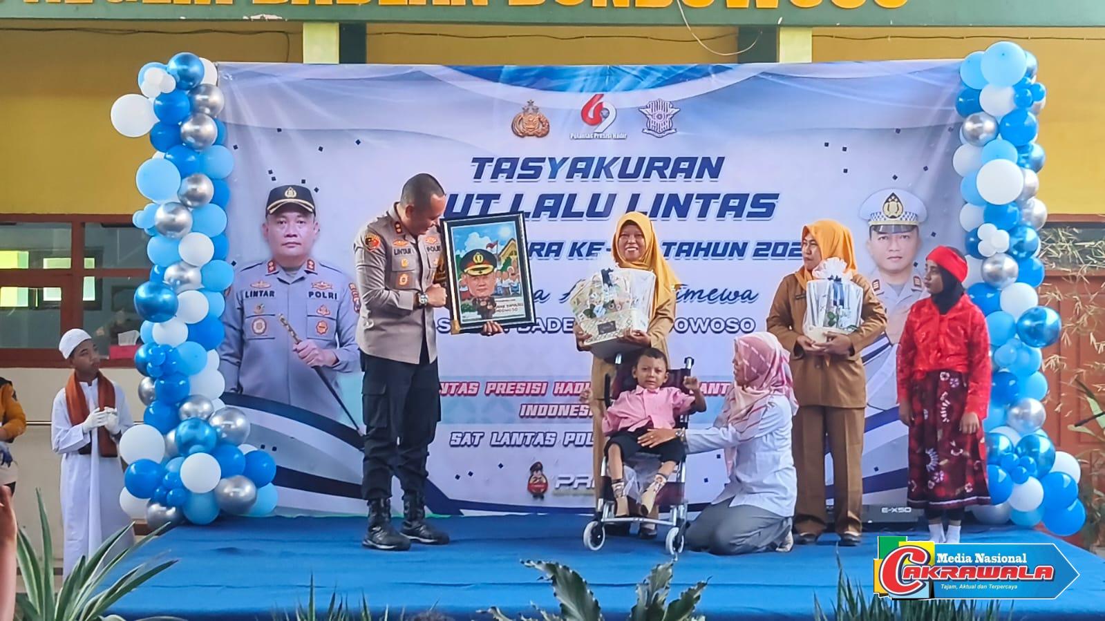 Bondowoso,MNCakrawala – Peringatan HUT Lalu Lintas Bhayangkara ke-69 Di kabupaten Bondowoso digelar tak seperti biasanya. Sejumlah siswa berkebutuhan khusus ikut memeriahkan acara tasyakuran bersama polisi Lalu Lintas.