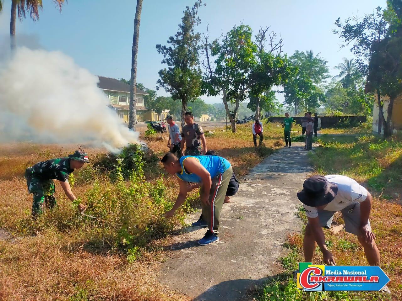 Anggota Kodim 0822 Bondowoso melaksanakan kegiatan pembersihan pangkalan Ex. Yonif 514 Jl. Saliwiryo Pranowo Kelurahan Badean, Bondowoso dengan memotong rumput yang panjang dan membersihkannya Sabtu, (27/07/2024).