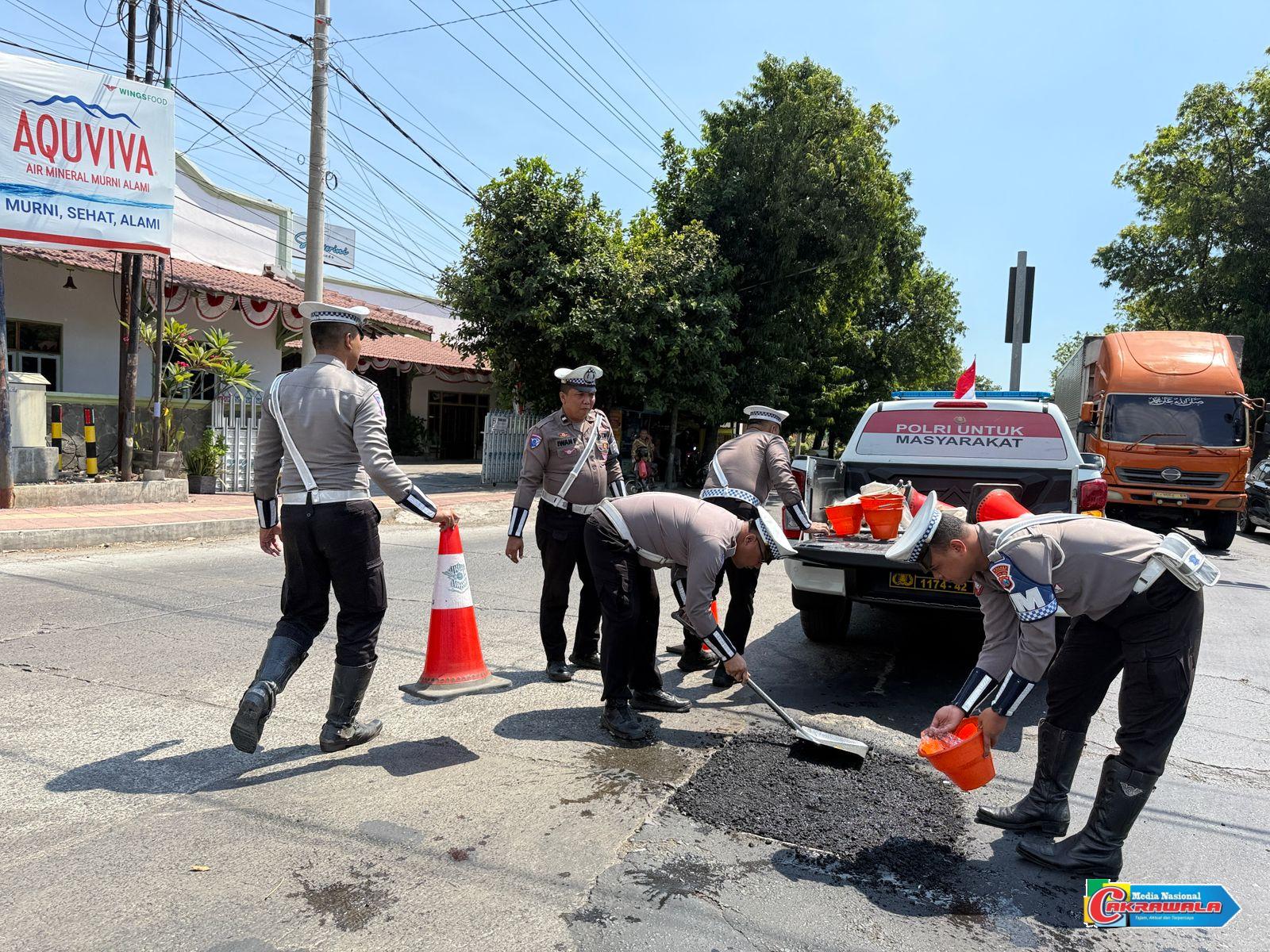 Peduli Keselamatan Masyarakat Polantas Polres Situbondo Tambal Jalan Berlubang Cegah Laka