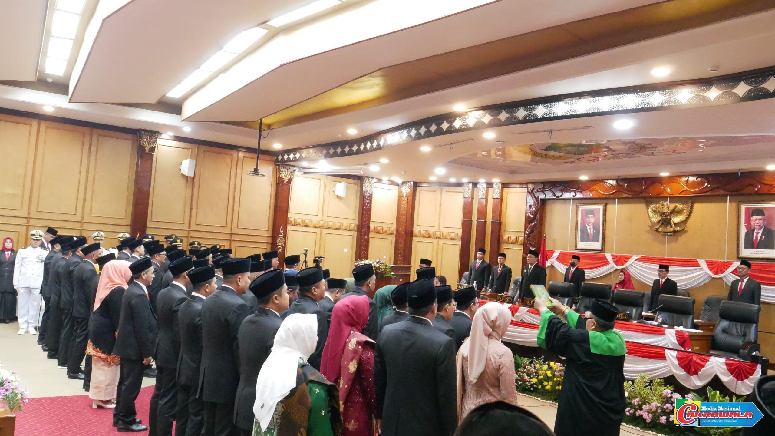 Dalam sambutan Menteri Dalam Negeri (Mendagri) yang disampaikan oleh Plt. Bupati Sidoarjo, Subandi menyampaikan ucapan selamat kepada 50 anggota DPRD Kabupaten Sidoarjo yang dilantik.