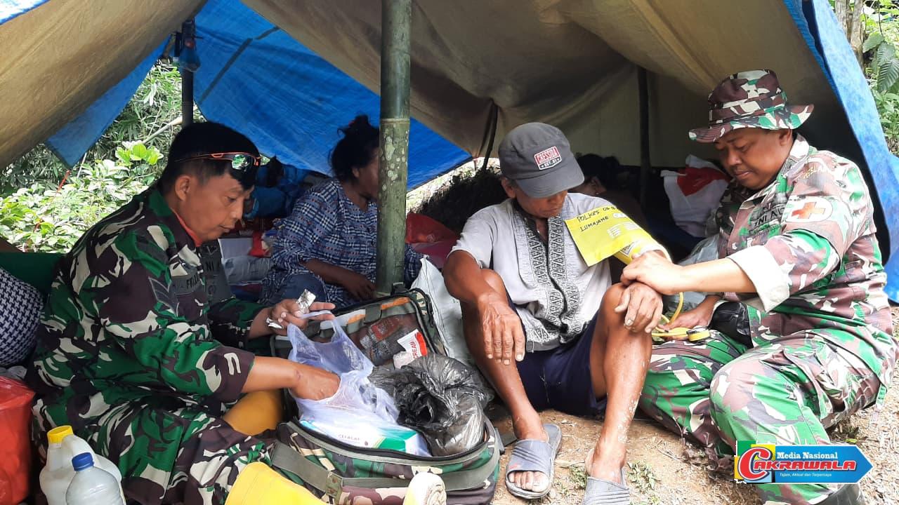 “Kami memastikan warga mendapatkan penanganan awal dengan cepat. Banyak di antara mereka yang mengalami batuk, luka lecet, dan kelelahan,” ungkap Peltu Iswahyudi saat menangani salah satu warga lanjut usia.