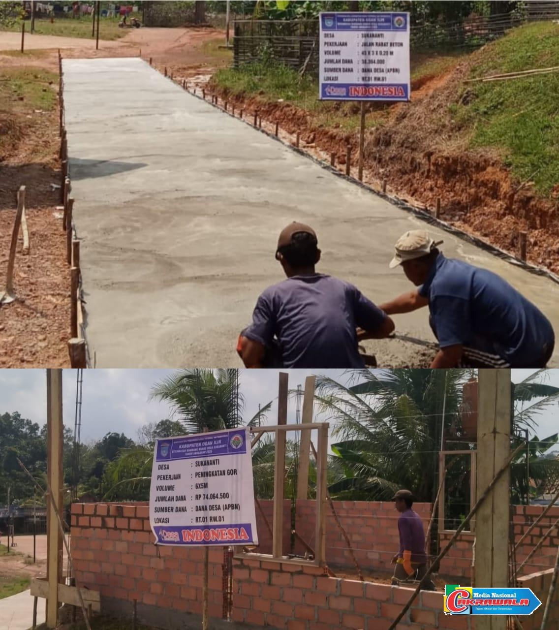 Pembangunan di desa Sukananti saat ini sedang berjalan dengan baik. Dua bangunan,jalan dan gedung yang sedang dalam proses pembangunan terlihat sudah mulai dikerjakan.