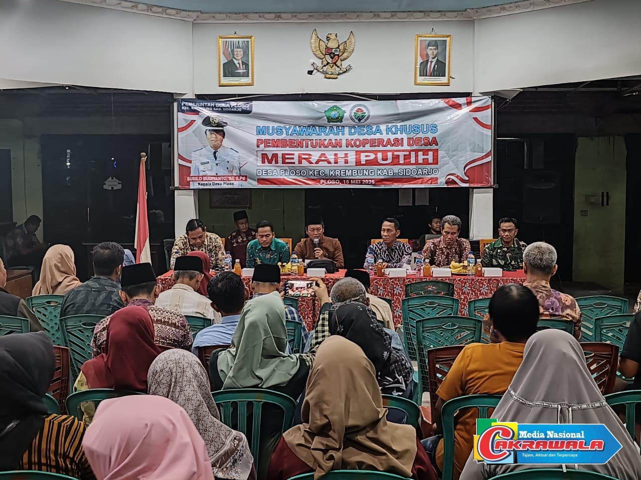 Sidoarjo, MN Cakrawala– Desa Ploso melaksanakan pembentukan Koperasi “Merah Putih” Sesuai Intruksi Presiden No 9 Tahun 2025 untuk pemerataan ekonomi desa, juga dukungan regulasi surat edaran Mentri Koperasi No. 1/2025 dan SK No. 9/2025 yang memastikan proses pembentukan jelas dan terarah. Desa Ploso, Kecamatan Krembung, Kabupaten Sidoarjo, melalui Musyawarah Desa Khusus (MUSDESUS) membentuk Koperasi Desa Merah Putih, Kamis malam (15/05/2025).