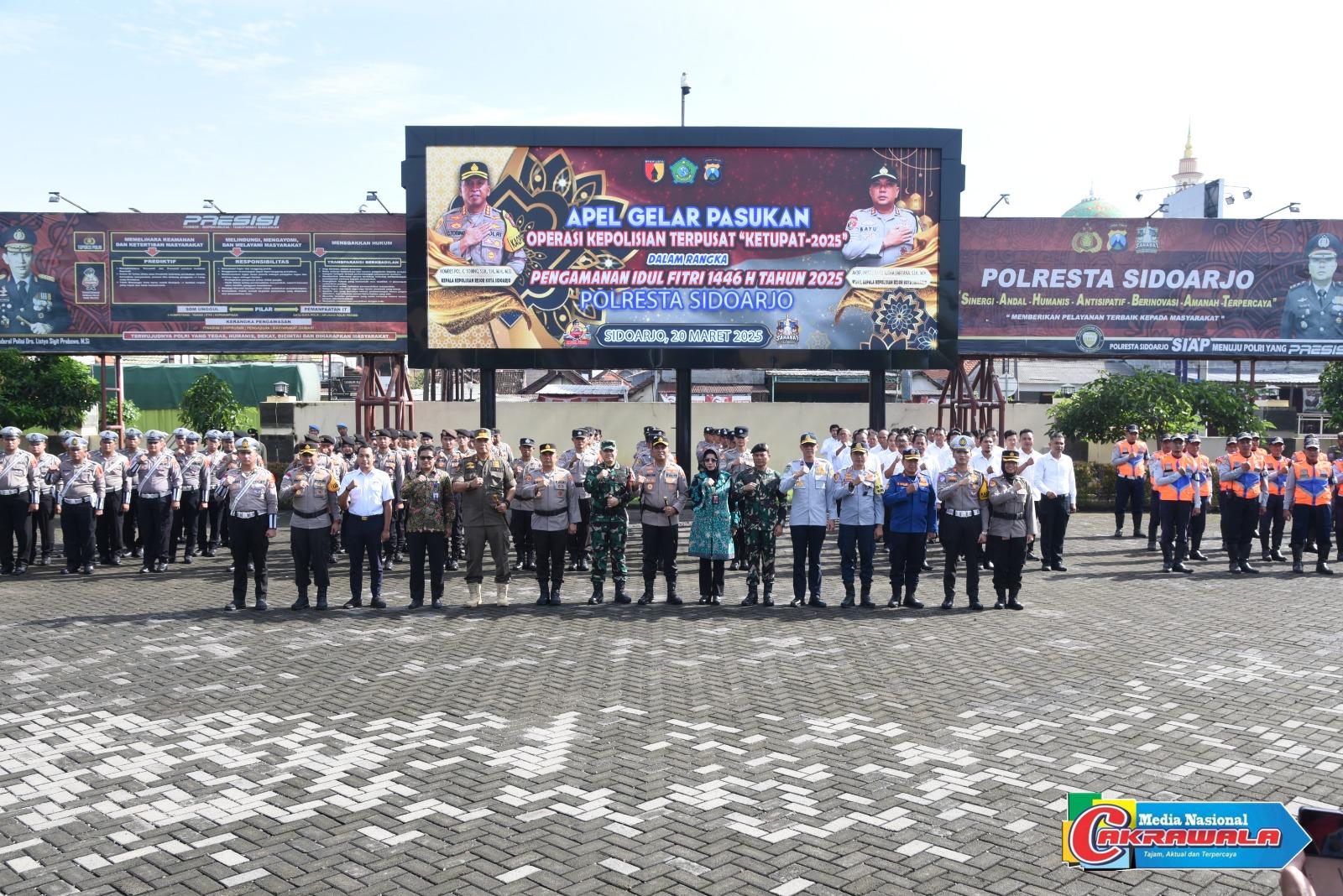 Sidoarjo, MN Cakrawala– Apel Gelar Pasukan Operasi Ketupat Semeru 2025 digelar Polresta Sidoarjo, Kamis, (20/3). Sebanyak 565 personil gabungan akan diterjunkan untuk mengamankan arus mudik Lebaran tahun ini. Diantaranya anggota Polresta Sidoarjo, anggota Kodim 0816 Sidoarjo serta Satpol PP Sidoarjo dan Dishub Sidoarjo. Operasi Ketupat Semeru 2025 digelar mulai 23 Maret 2025 hingga 8 April 2025.