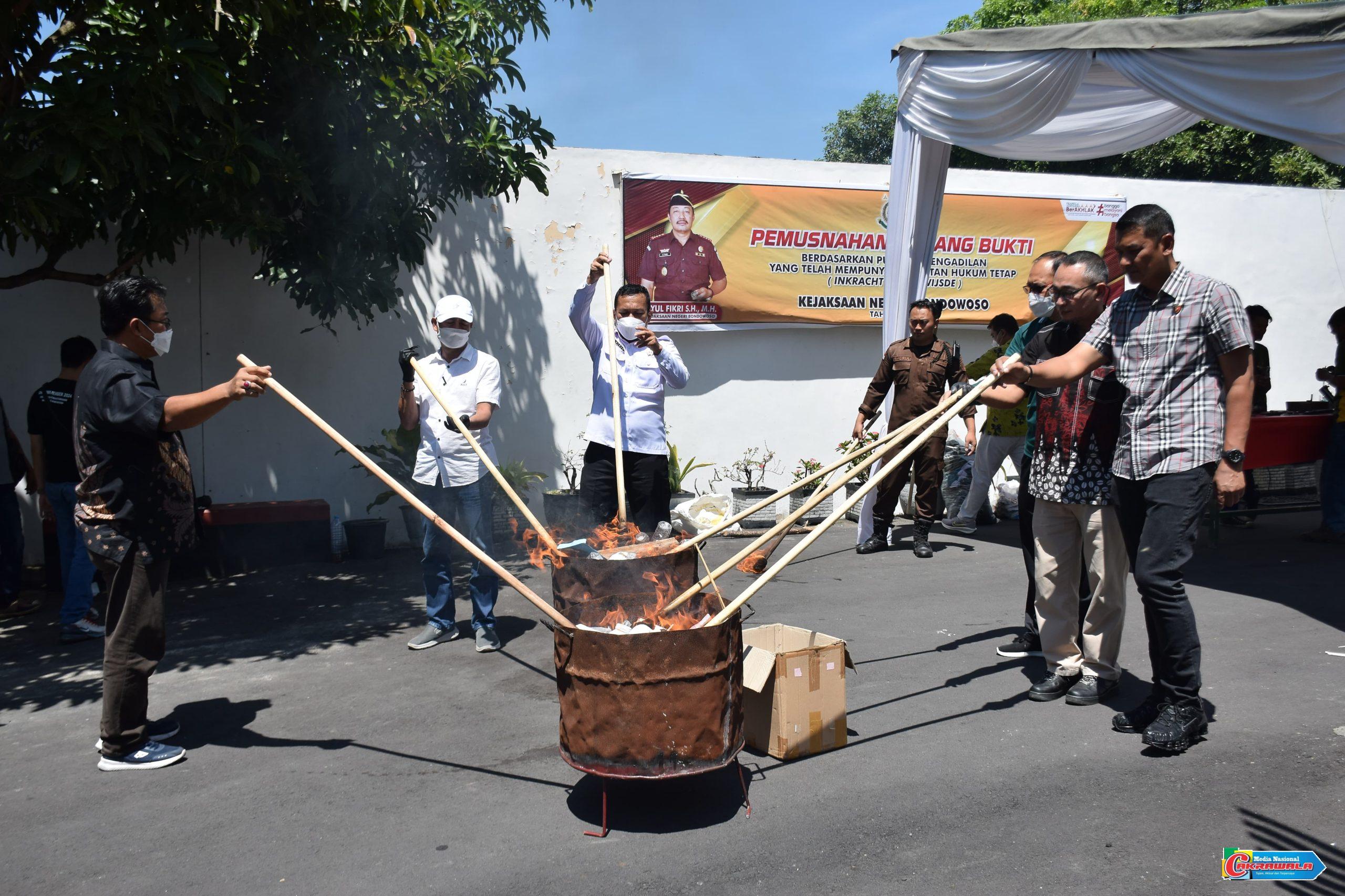 Dalam sambutannya, Kajari Bondowoso menegaskan bahwa pemusnahan barang bukti merupakan bentuk pelaksanaan eksekusi putusan pengadilan yang bertujuan memberikan kepastian hukum serta mencegah penyalahgunaan barang bukti oleh pihak tidak bertanggung jawab. “Hari ini, kami memusnahkan barang bukti dari 77 perkara yang ditangani sejak Februari hingga Agustus 2025, dengan berbagai jenis barang bukti mulai dari narkotika, senjata api, hingga bahan peledak,” ujar Dzakiyul Fikri.