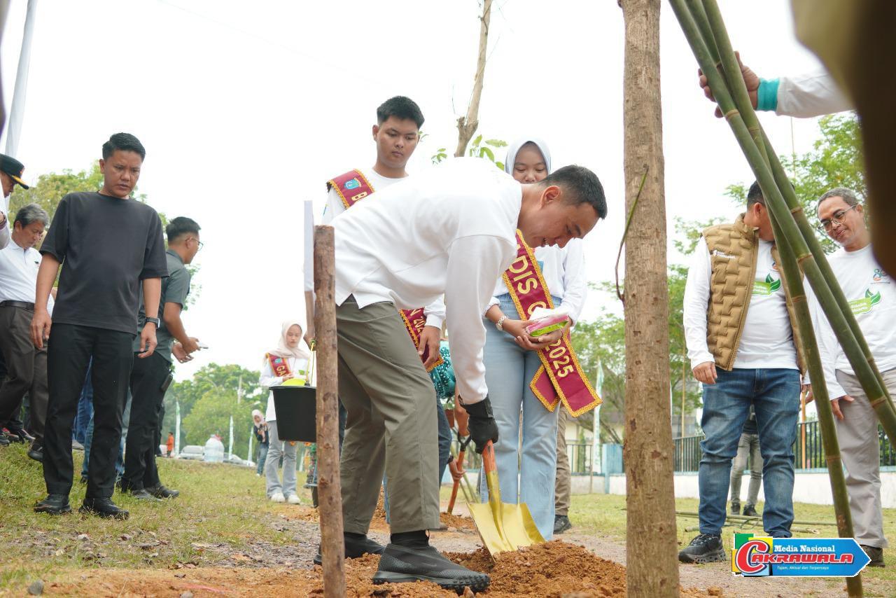 Acara simbolis penanaman berlangsung di depan GOR Perahu Kajang Kayuagung, Jumat (10/10/2025), dan dihadiri oleh Bupati OKI H. Muchendi Mahzareki, unsur Forkopimda, pelajar, serta masyarakat sekitar.