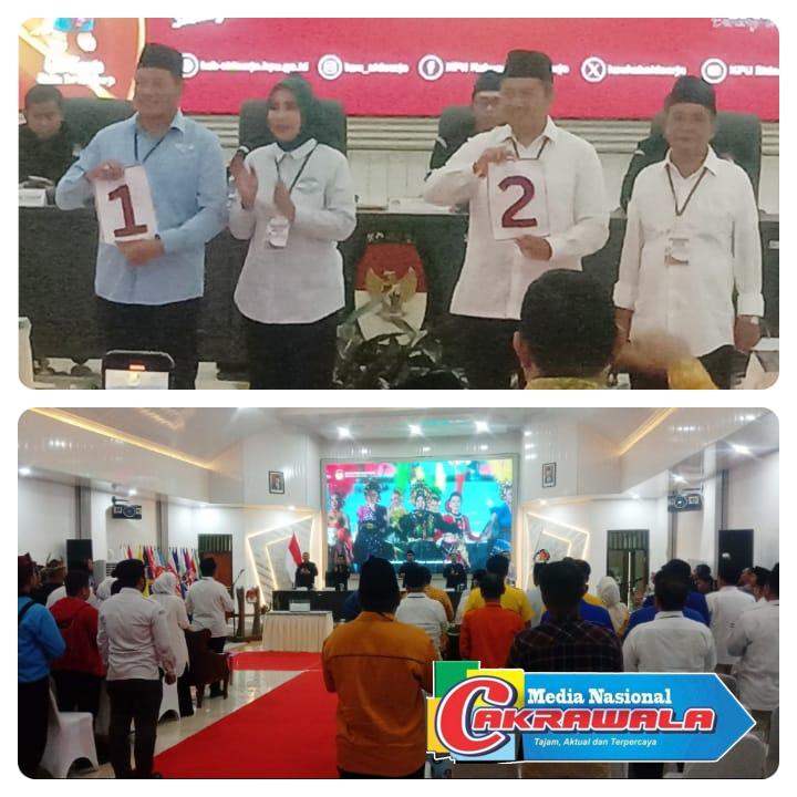 Ketua KPU membacakan nomor urut dari hasil pengambilan, maka pada hari ini, senin 23 September 2024 bertempat di kantor KPU Sidoarjo jl.Cemengkalan Sidoarjo, ditetapkan nomor urut 1 adalah pasangan H.Subandi – Mimik Idayana partai pengusung Gerindar, Golkar, Demokrat dan nomor urut 2 pasangan Amir Aslichin – Edy Widodo dengan partai pengusung PKB, PDIP, PAN. (Ubaid)